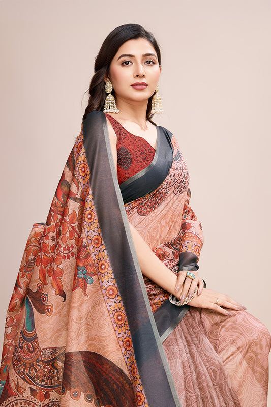 Peach Floral Chiffon Saree With Blouse