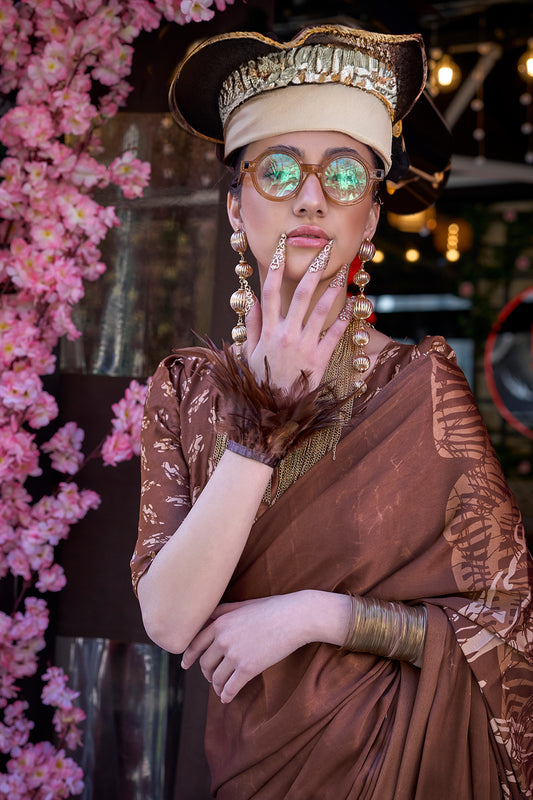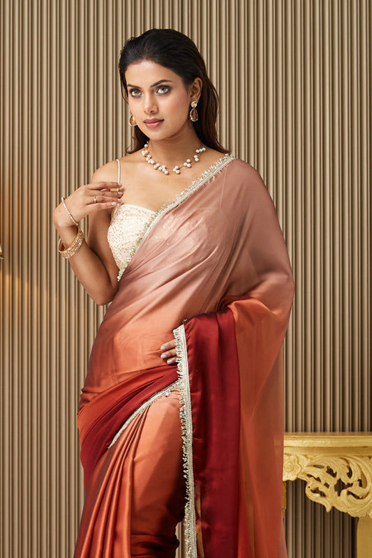 Brick Red Banarasi Georgette Saree With Jacquard Blouse