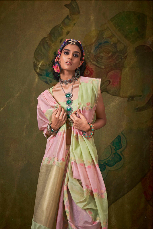 Green Pink Rangkaat Saree With Heavy Pallu And Blouse