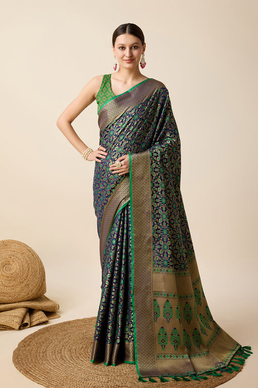 Green Patola Saree Weaved With Tassels