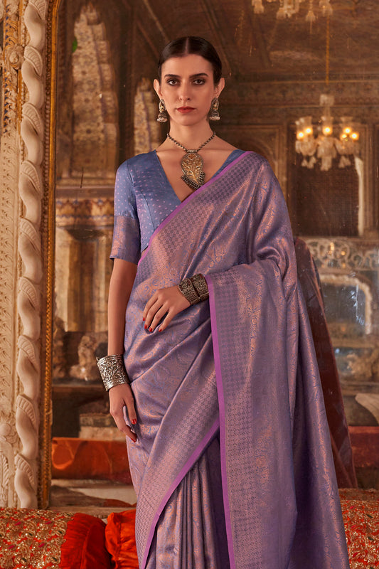 Lilac Heavy Banarasi Saree With Blouse