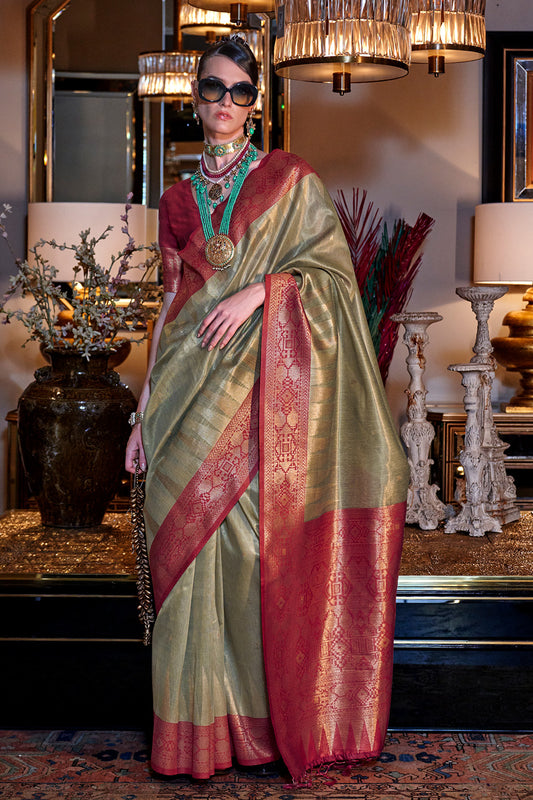 Light Green Zari Tissue Saree With Pallu And Blouse
