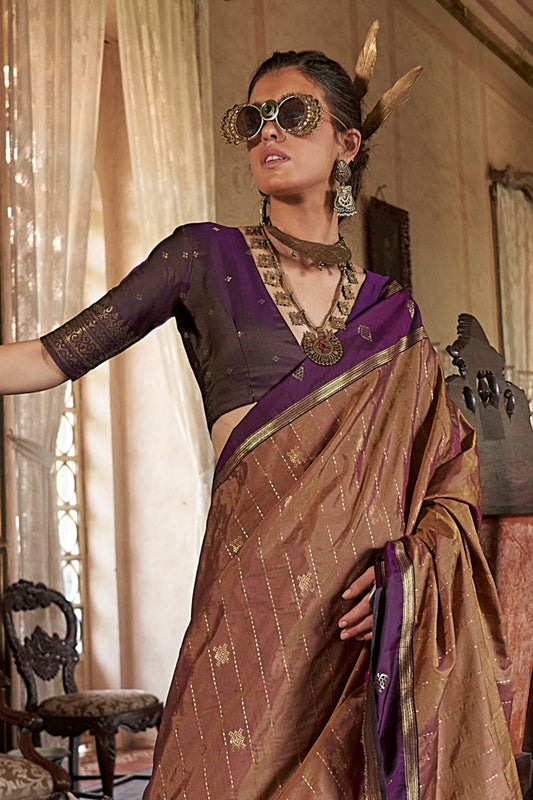 Lilac Paithani Zari Tissue Saree With Blouse