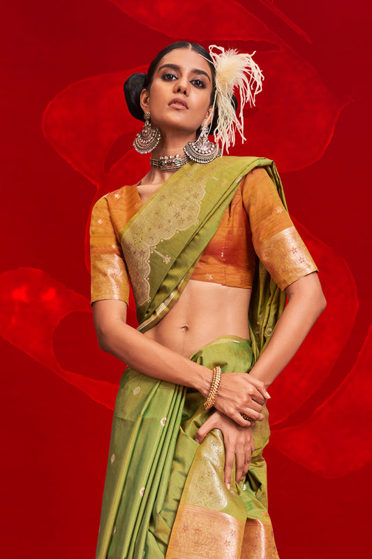 Light Green Paithani Zari Tissue Saree With Blouse