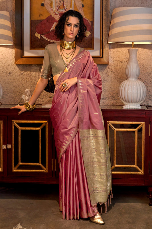 Light Pink Dharmavaram Weaving Saree With Blouse
