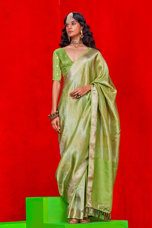 Dusty Green Viscose Zari Tissue Saree With Blouse