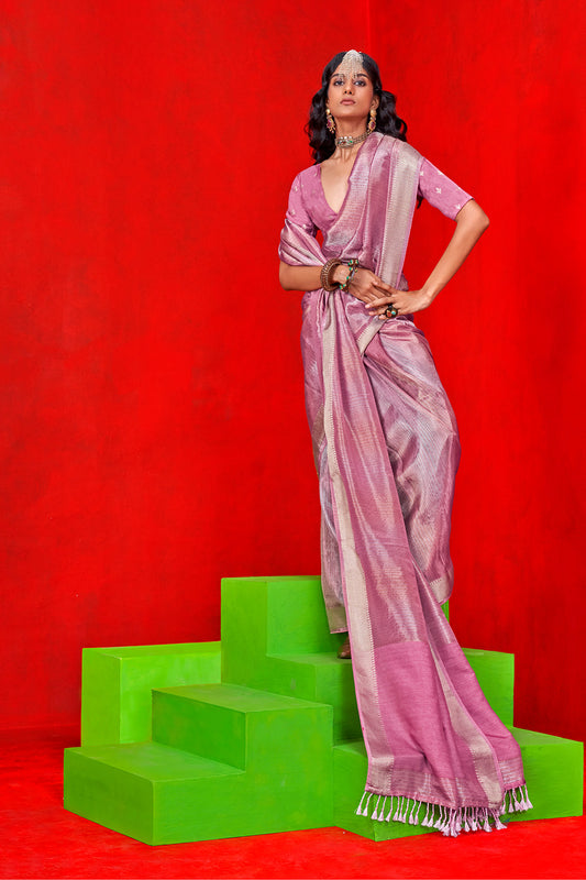 Dusty Lilac Viscose Zari Tissue Saree With Blouse