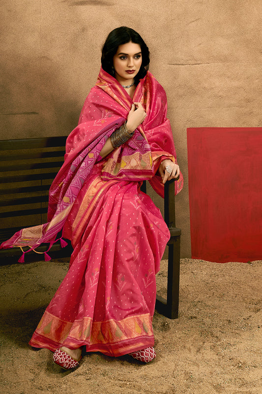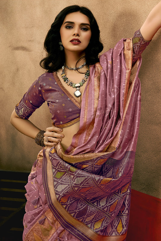 Dusty Pink Viscose Zari Tissue Saree With Blouse