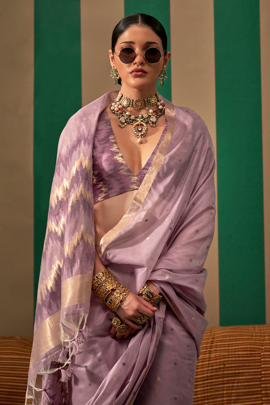 Lilac Elegant Ikkat Sarees With Blouse