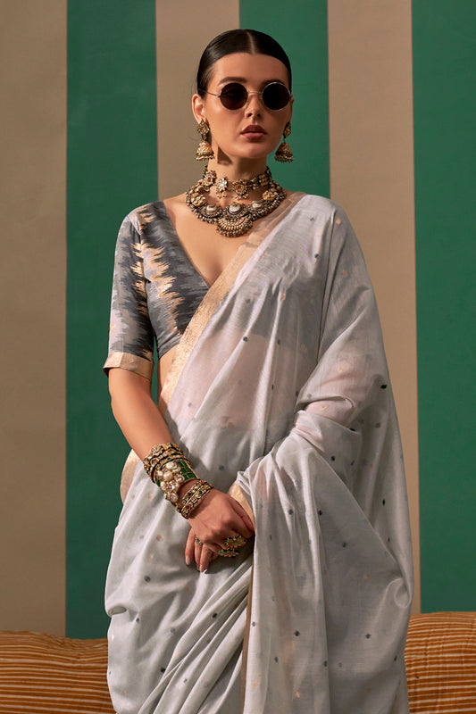 Light Grey Elegant Ikkat Sarees With Blouse