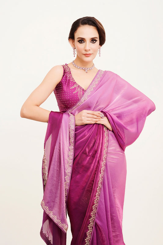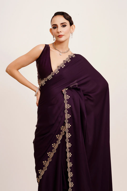 Royal Purple Satin Pichwai Saree With Brocade Blouse