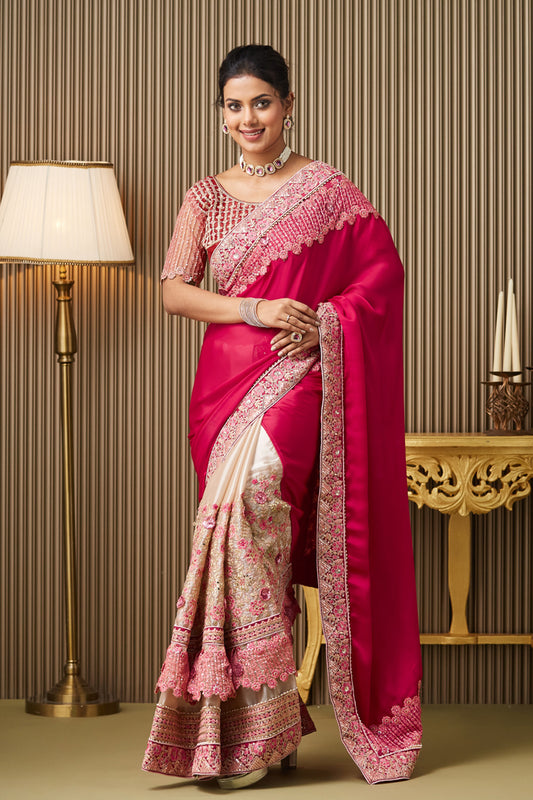 Pink Ajrakh Print Satin Georgette Saree With Blouse