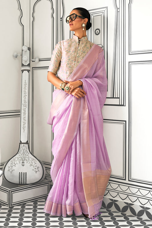 Lilac Banarasi Georgette Saree With Jacquard Blouse