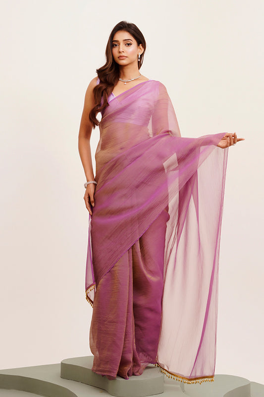 Lilac Solid Moss Chiffon Jaquard Saree With Blouse