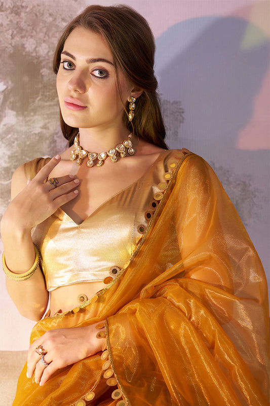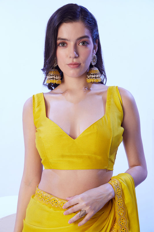 Multi Chinon Saree With Lace And Unstitched Blouse