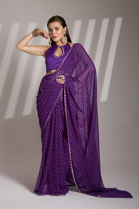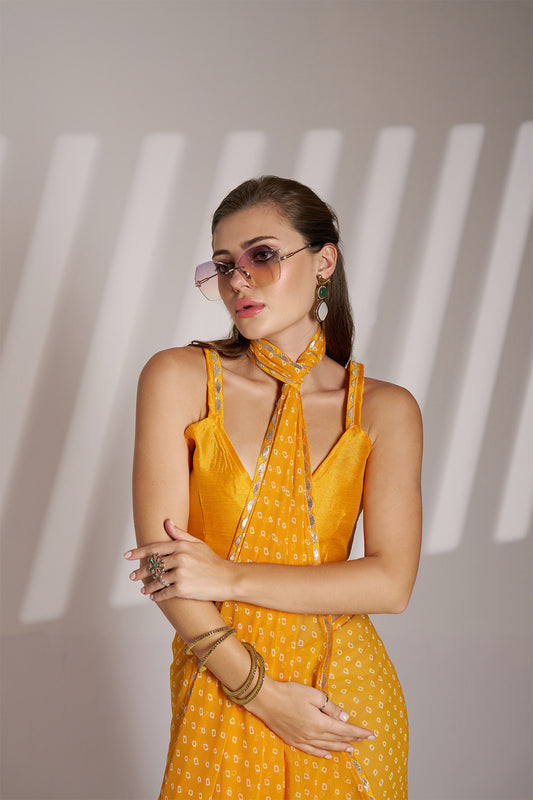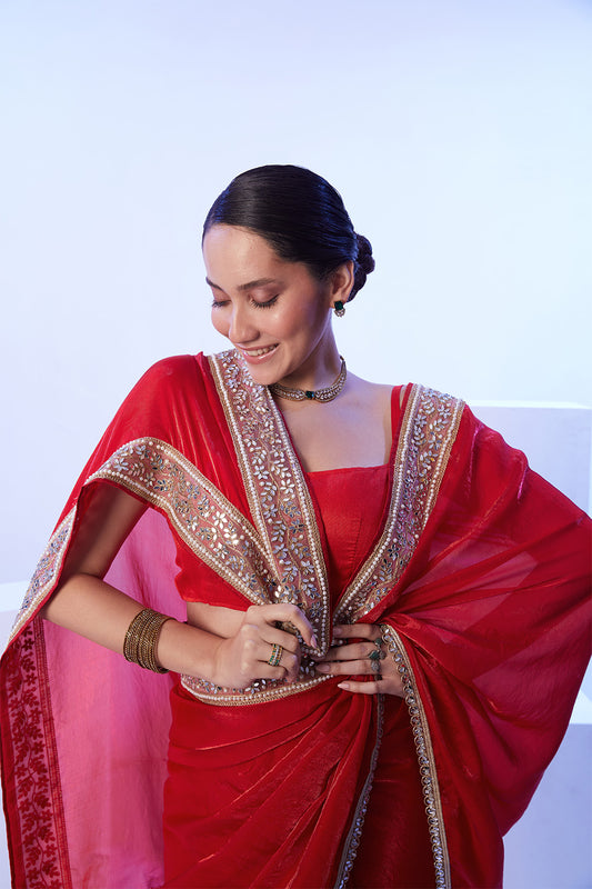 Yellow Red Colorblocked Chiffon Saree With Blouse