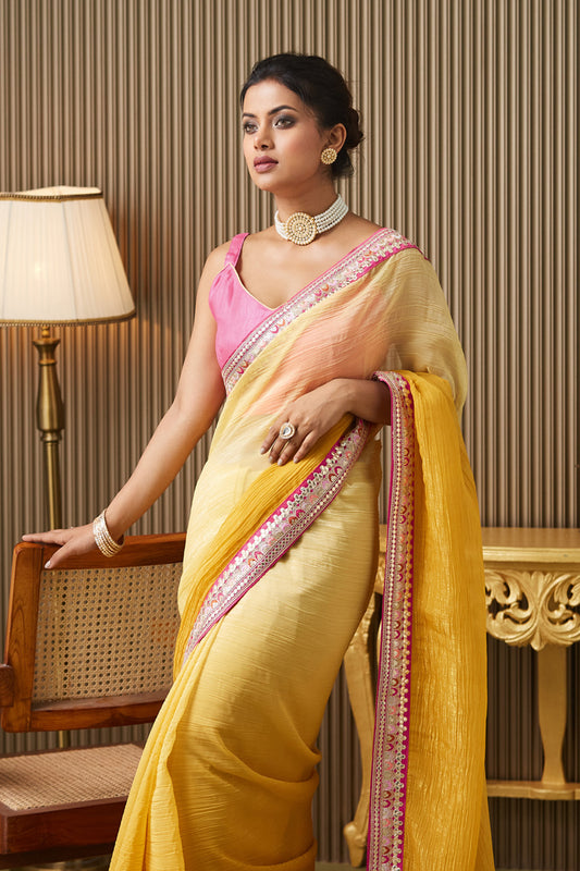 Yellow Gotta Patti Chiffon Saree With Blouse