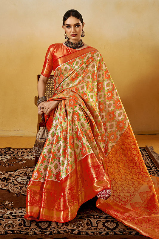 Golden Orange Dual Tone Jaquard Saree With Blouse