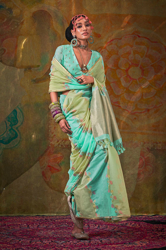 Dusty Green Viscose Zari Tissue Saree With Blouse