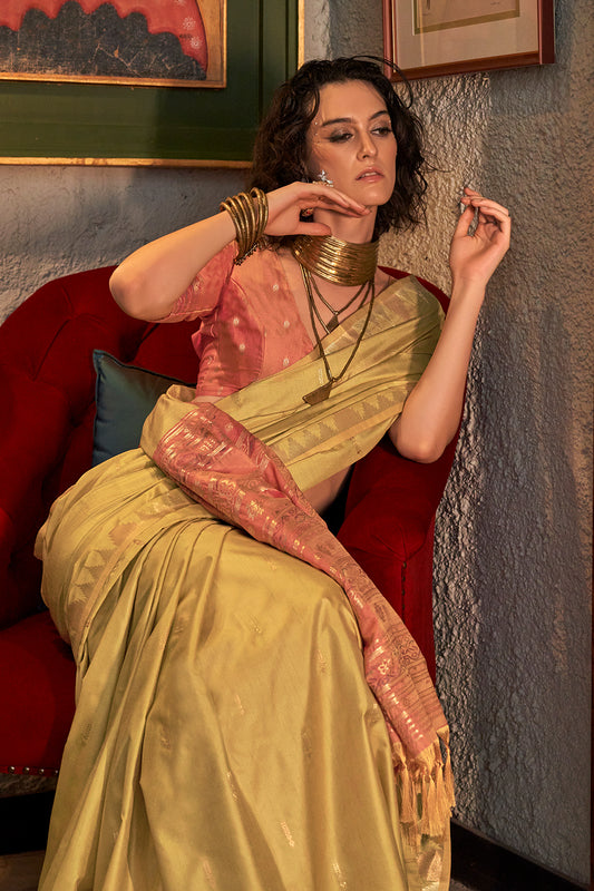 Green Beige Rangkaat Saree With Heavy Pallu And Blouse