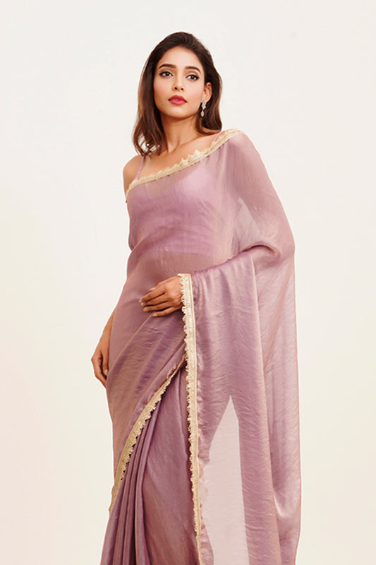 Dusty Lilac Viscose Zari Tissue Saree With Blouse