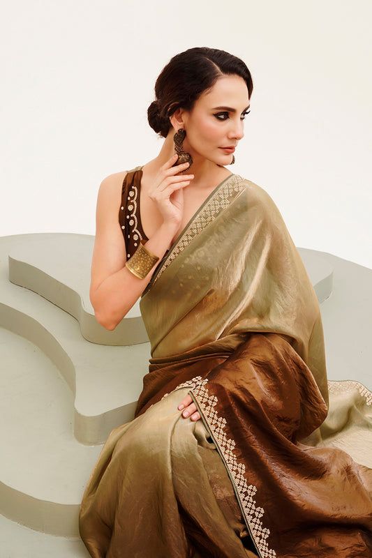 Dusty Gold Viscose Zari Tissue Saree With Blouse
