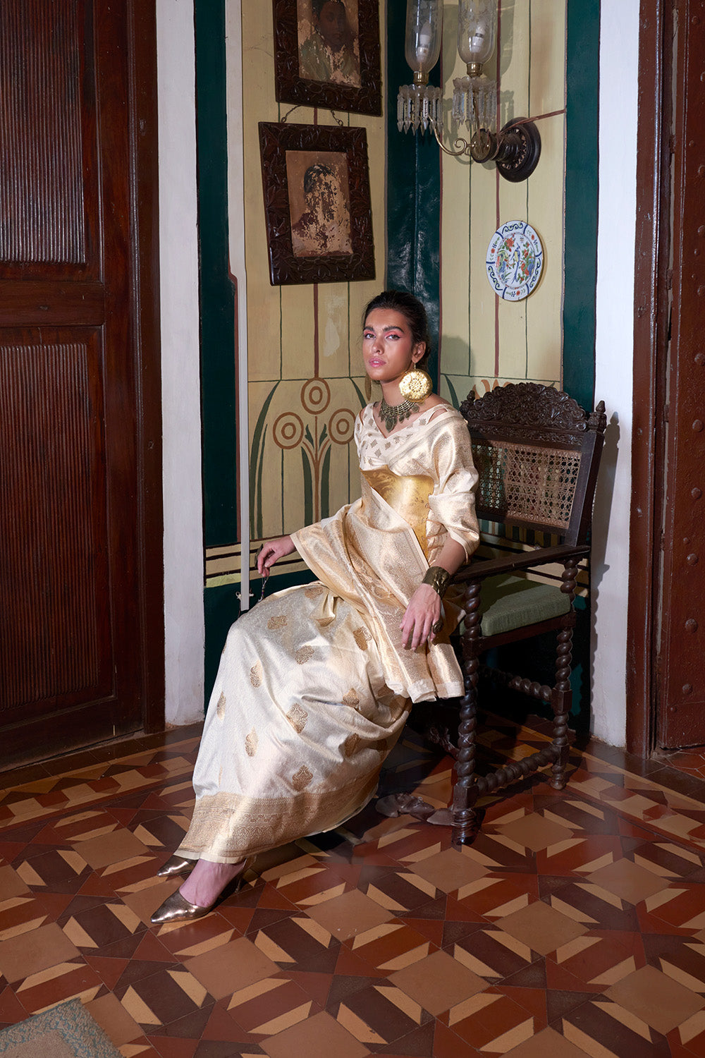 This Beige Two Tone Saree paired with a brocade blouse offers a sophisticated blend of subtle hues and rich texture. The saree’s soft fabric ensures a graceful drape while the contrasting tones add depth and elegance. Complemented by an intricately woven brocade blouse, this ensemble is perfect for formal events and special occasions. Its refined craftsmanship and balanced design create a timeless look that combines comfort with understated luxury.