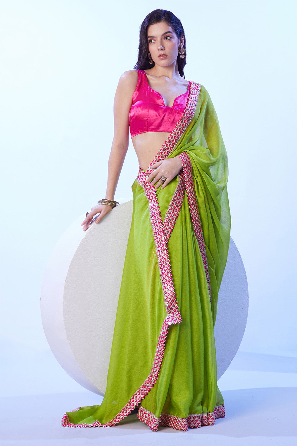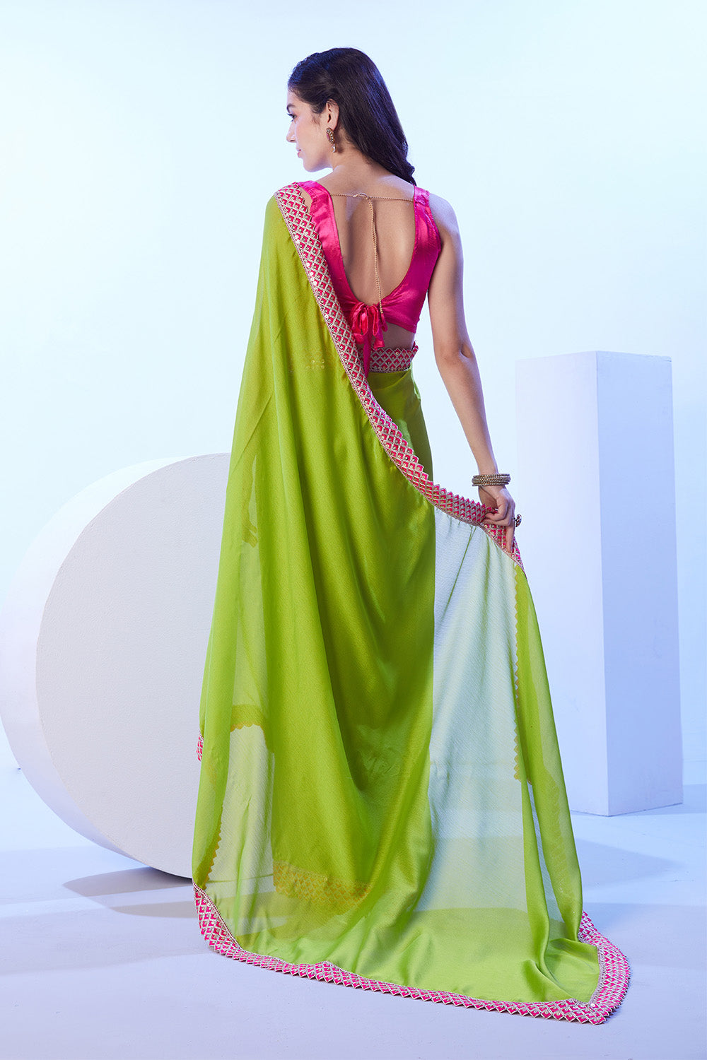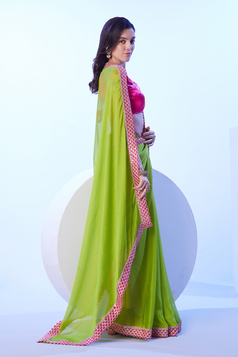 लेस और ब्लाउज के साथ ग्रीन मॉस साड़ी