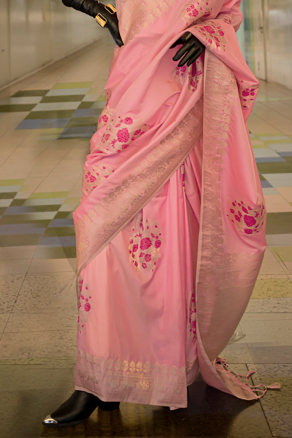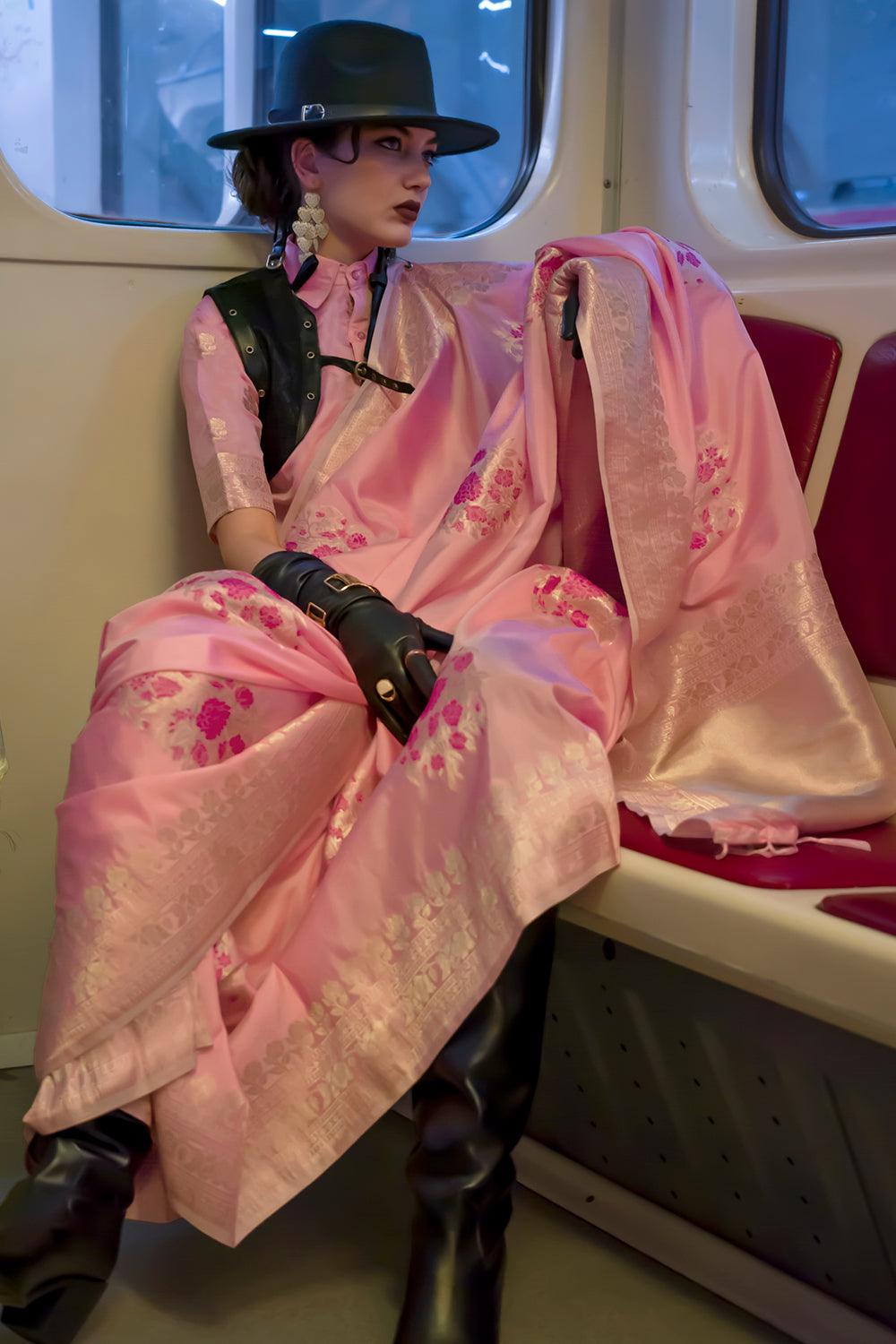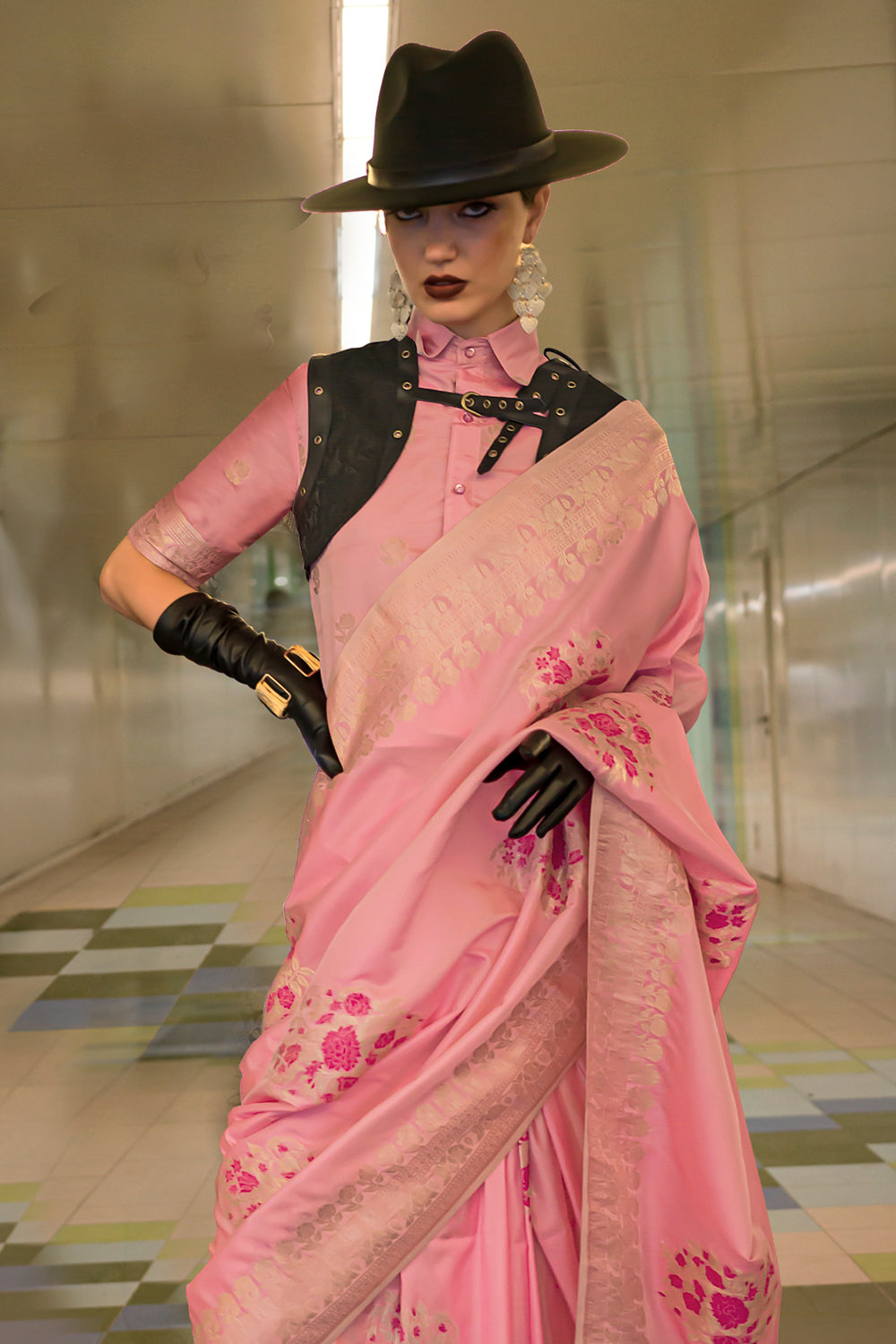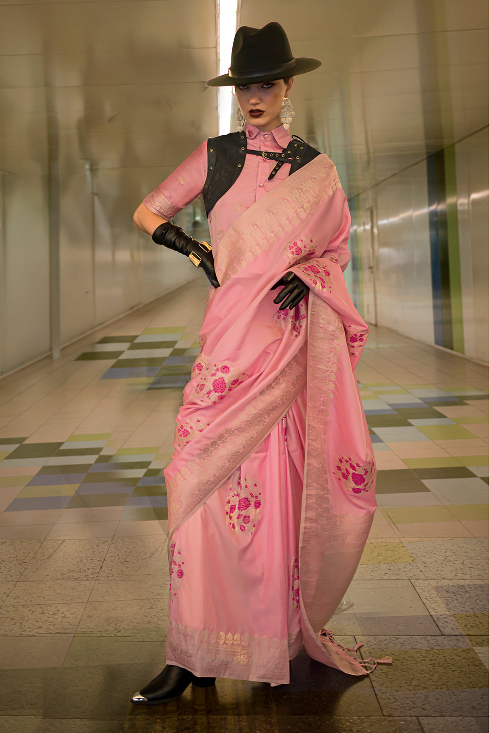 गुलाबी कटन साड़ी बूटी ब्लाउज के साथ