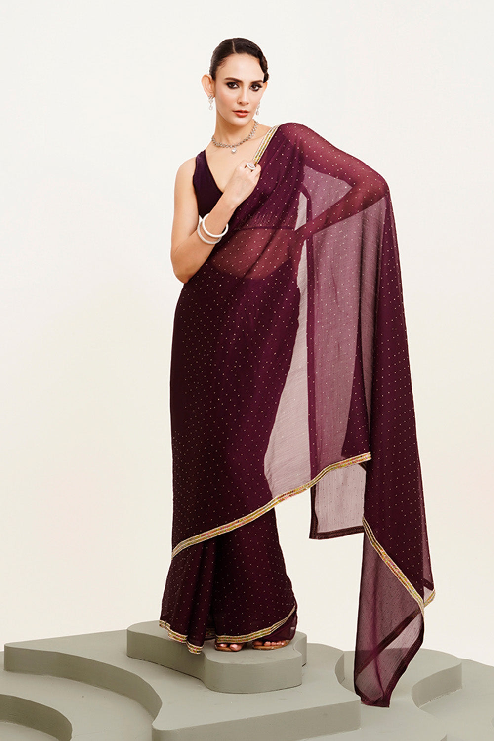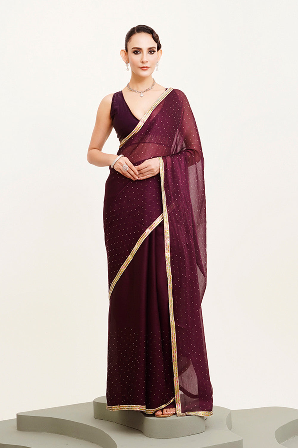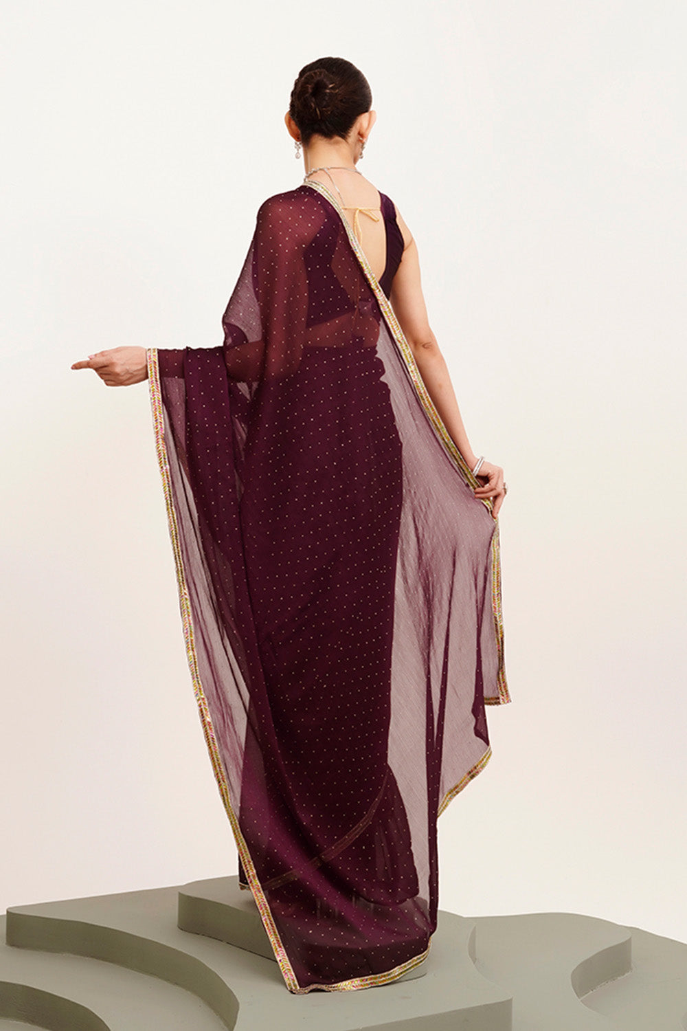 Maroon Beads And Stones Chiffon Saree With Blouse