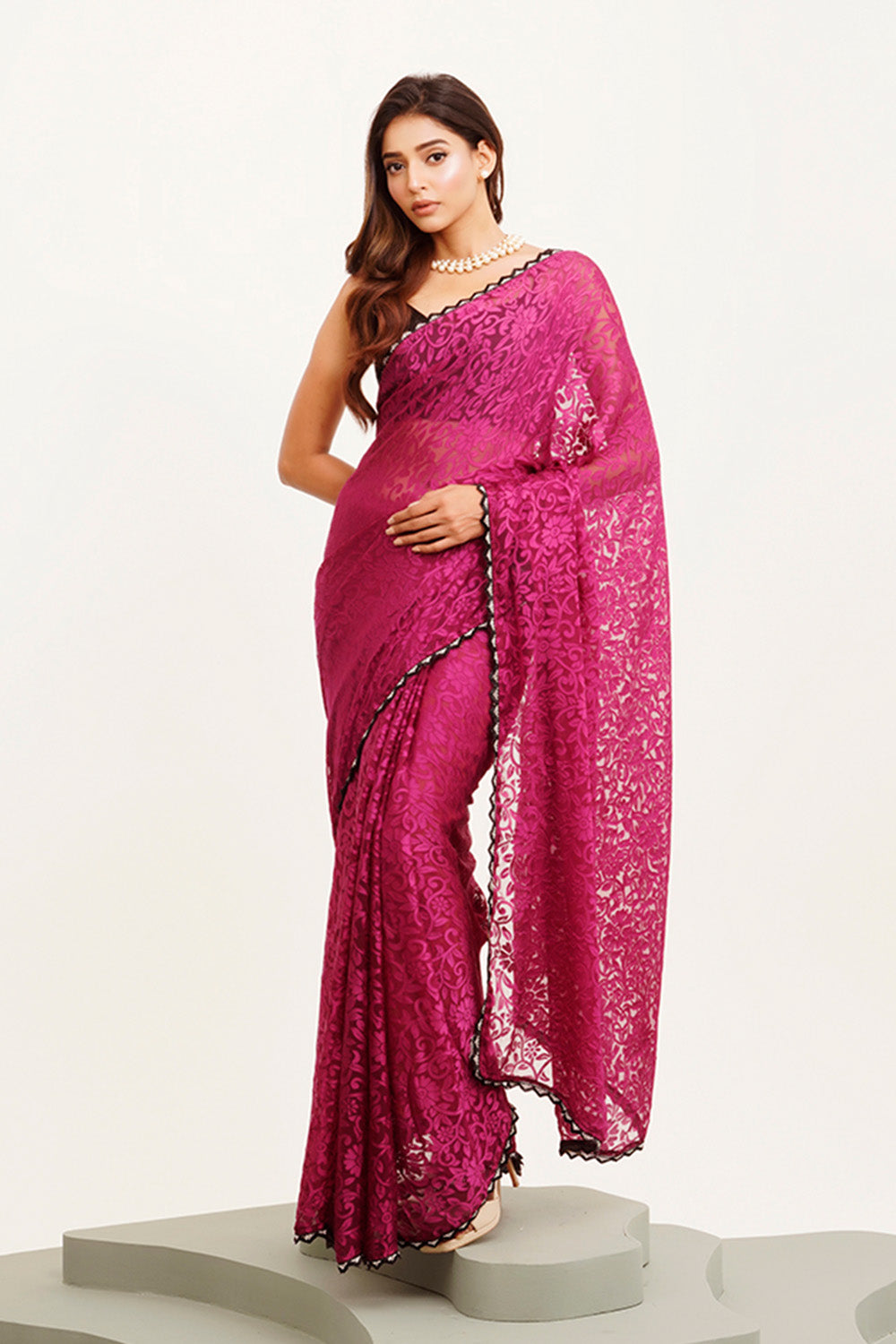 Elevate your traditional collection with this Purple Beads and Stones Saree, expertly crafted to blend elegance and contemporary style. The rich purple fabric is adorned with meticulously placed beads and stones that catch the light gracefully, enhancing your presence at any occasion. Included with the saree is a matching blouse designed for a perfect fit, ensuring comfort alongside sophistication. This ensemble promises to add a refined sparkle to your wardrobe with timeless appeal and expert detailing.
