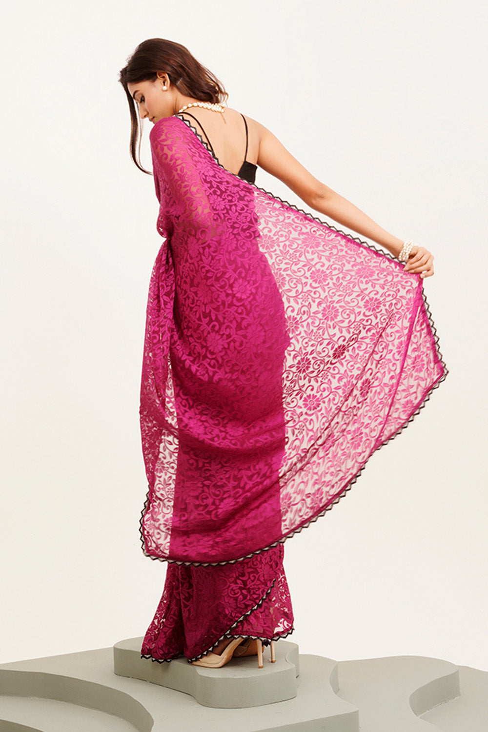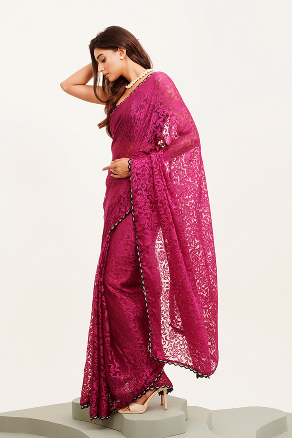 Purple Beads And Stones Saree With Blouse