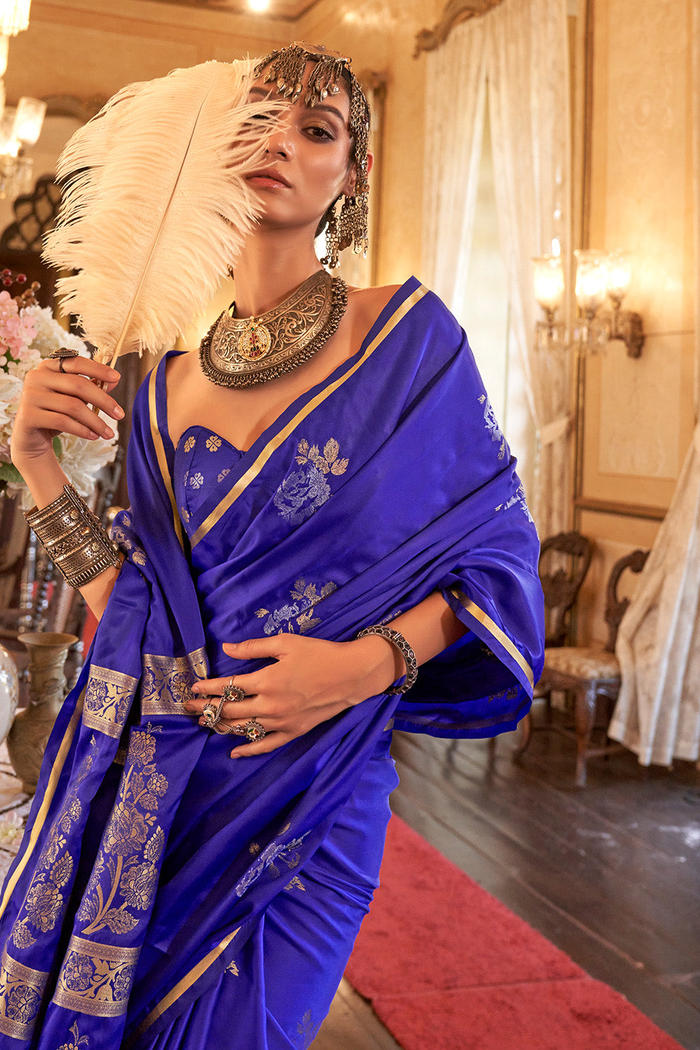 हमारी शानदार वायलेट सैटिन वीव साड़ी के साथ अपनी अलमारी को अपग्रेड करें। गहरा बैंगनी रंग और जटिल ब्रोकेड ब्लाउज इस साड़ी को एक सच्चा स्टेटमेंट पीस बनाते हैं। उच्च गुणवत्ता वाले रेशम से बनी यह साड़ी सुरुचिपूर्ण और पहनने में आरामदायक दोनों है। किसी भी अवसर के लिए बिल्कुल सही, यह साड़ी आपके पहनावे में परिष्कार का स्पर्श जोड़ेगी।