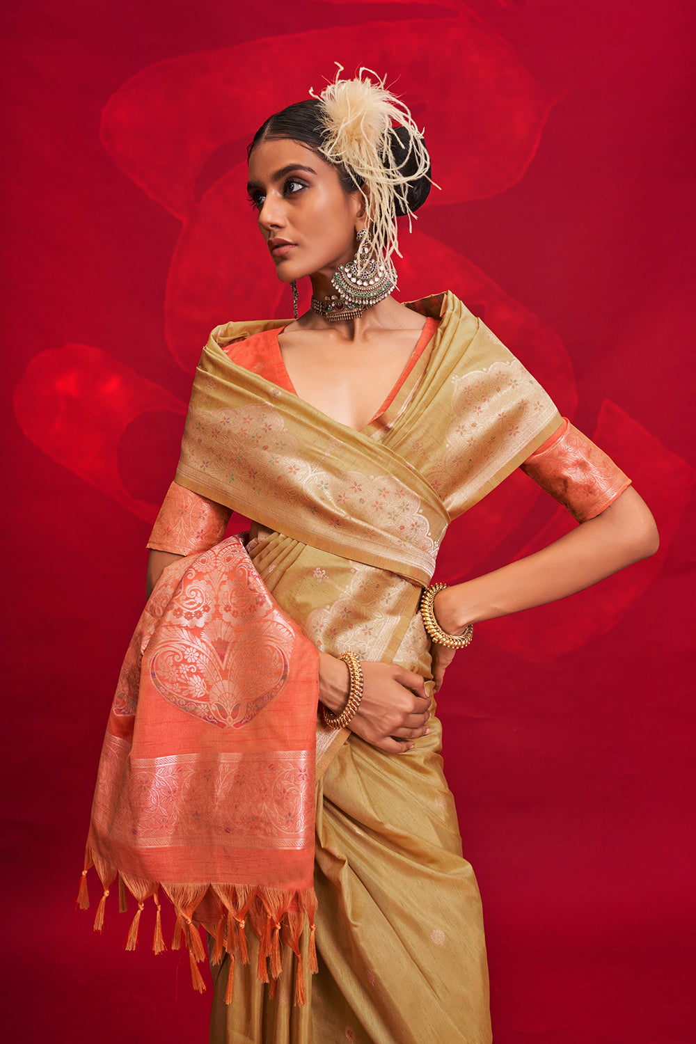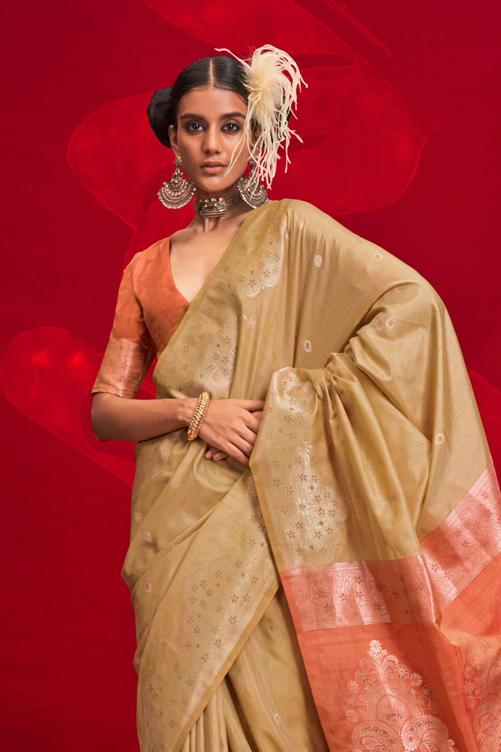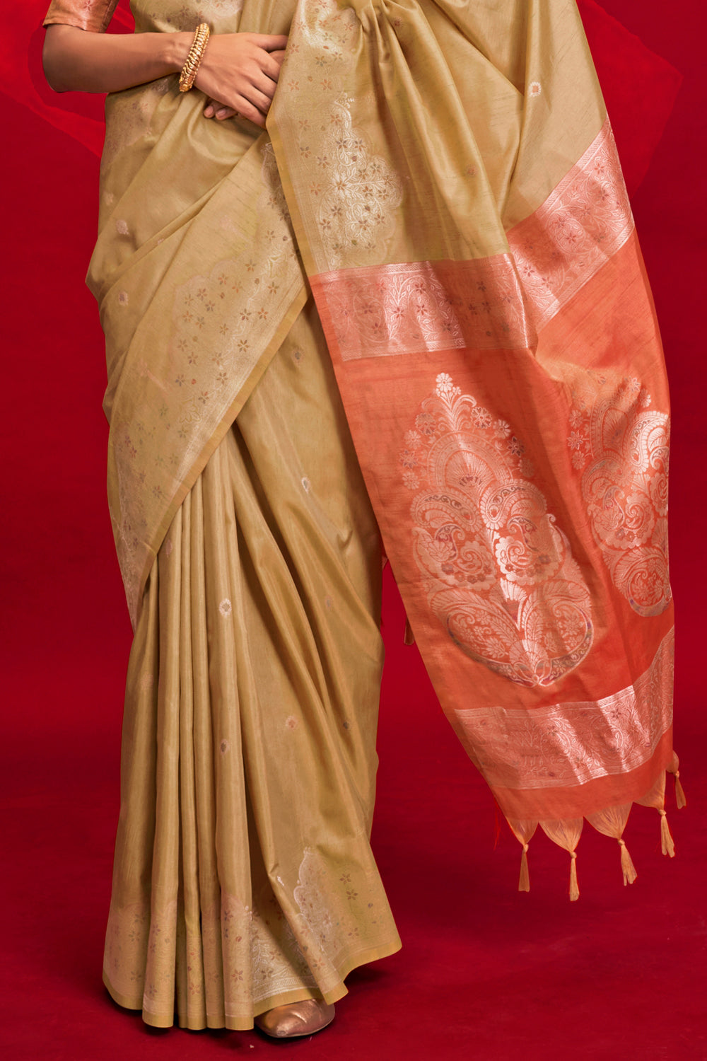 Discover effortless elegance with our Beige Saree. Featuring a contrasting pallu and blouse, this saree offers a classic yet modern look. Made with high-quality fabric, it offers comfort and style. Perfect for any occasion, this saree is a must-have addition to your wardrobe.