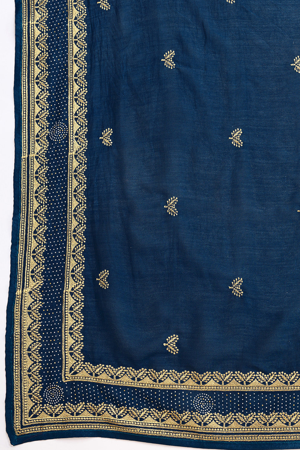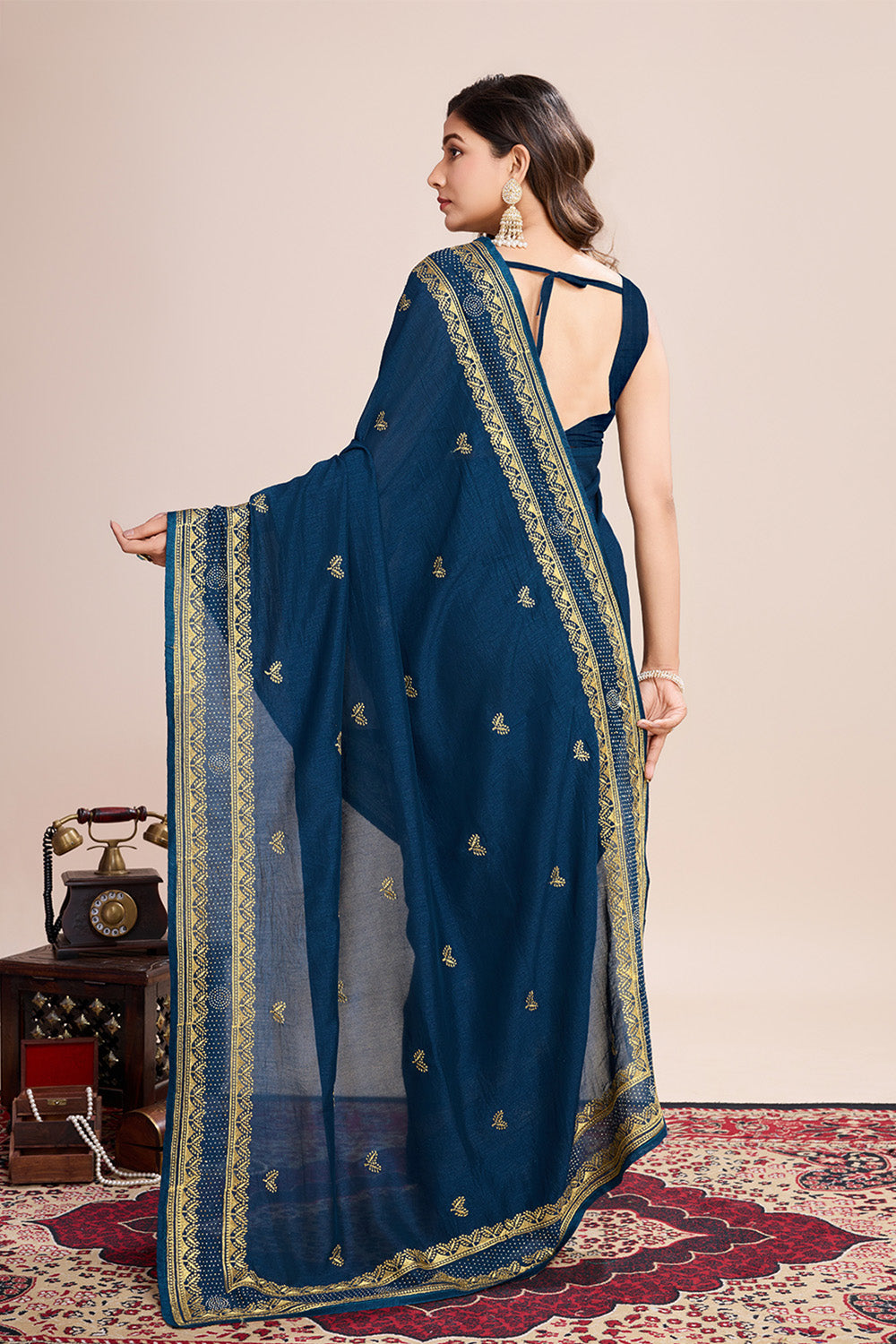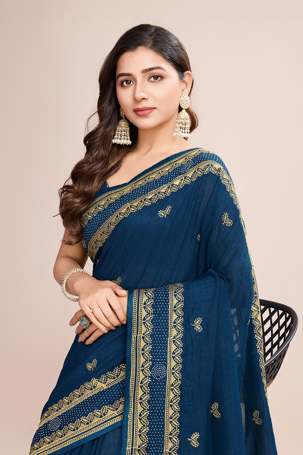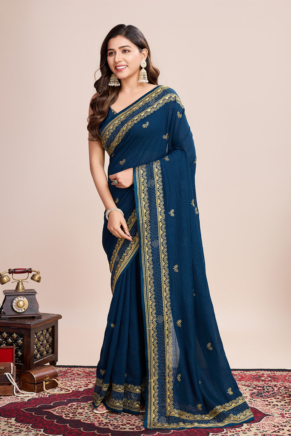 Blue Saree In Soft Pastel Color With Floral Embroidery