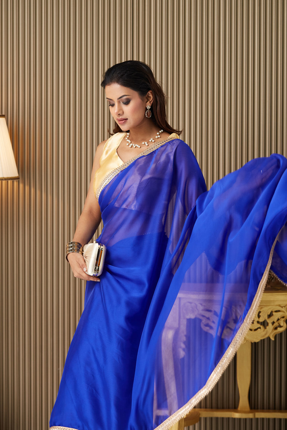 Elevate your wardrobe with this Blue Solid Satin Saree, paired with a matching blouse. Crafted from smooth satin fabric, it offers a lustrous finish and a graceful drape, perfect for formal occasions and celebrations. The solid blue hue provides a timeless elegance, allowing versatile styling options. This saree combines comfort with sophistication, making it an essential addition for those seeking refined traditional attire.