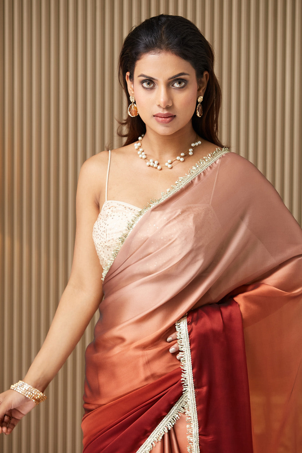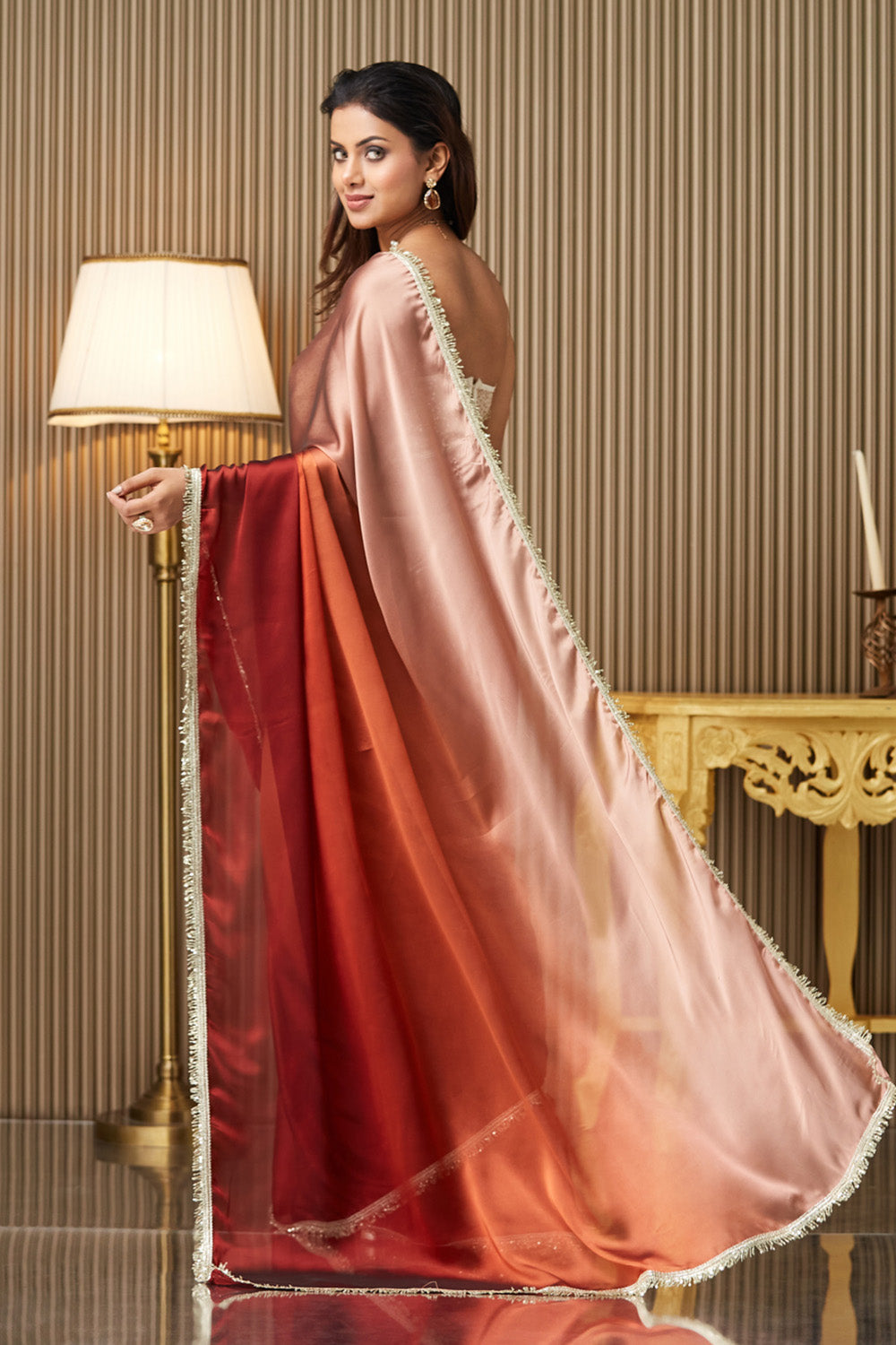 Elevate your ethnic wardrobe with this Brown Ombre Georgette Saree, paired with a matching blouse. Crafted from lightweight georgette fabric, it offers graceful draping and comfortable wear. The subtle ombre effect adds depth and sophistication, making it ideal for formal occasions and festive celebrations. This saree combines traditional elegance with contemporary style, ensuring you stand out with refined charm.
