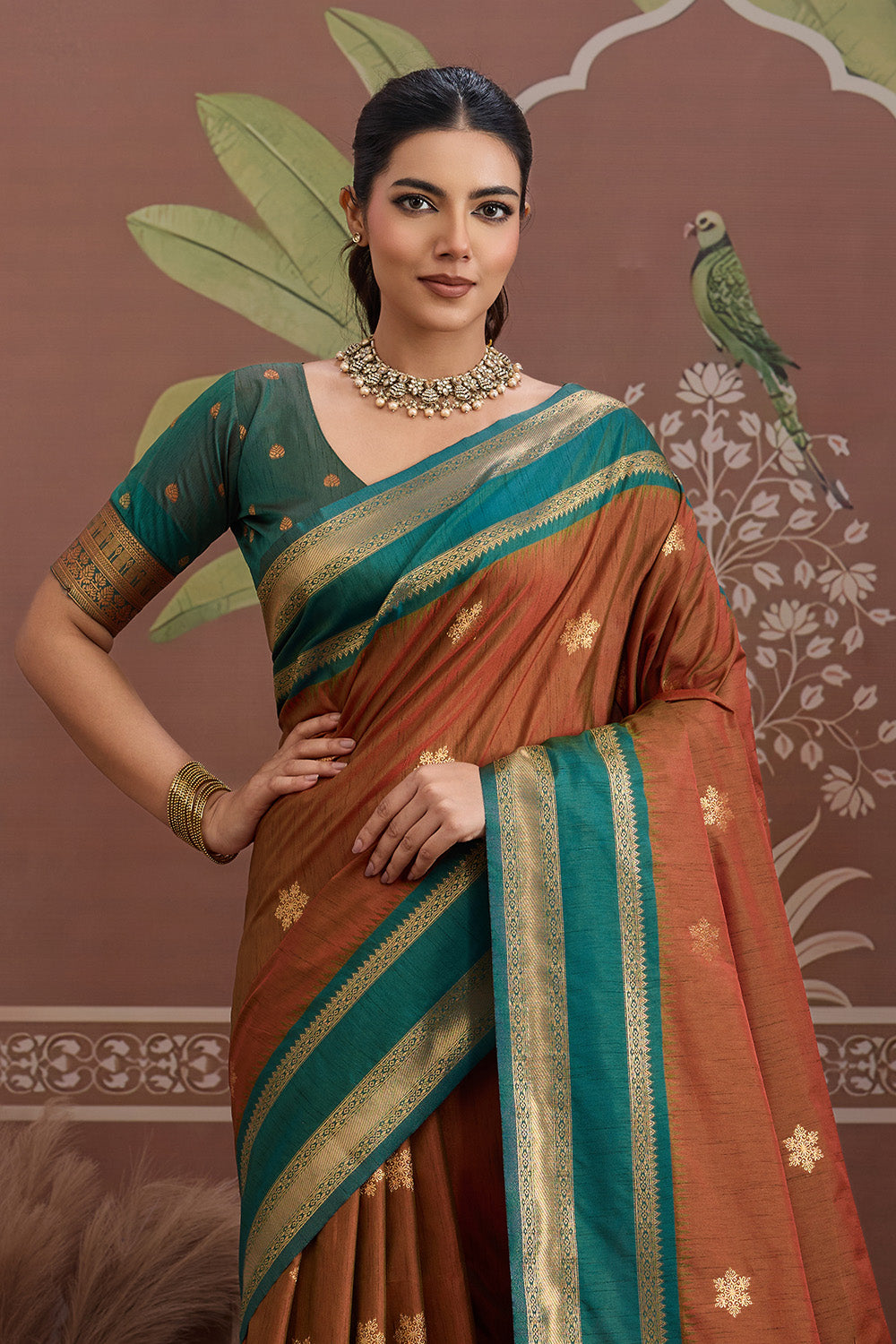 Celebrate tradition with this Brown Onam Design Saree, paired perfectly with a matching blouse. Crafted to embody the elegance of Onam festivities, its rich brown hue and intricate design make it ideal for festive occasions. The coordinated blouse ensures a seamless, polished look, offering both comfort and style. Elevate your ethnic wardrobe with this timeless piece that honors cultural heritage while providing a graceful fit.