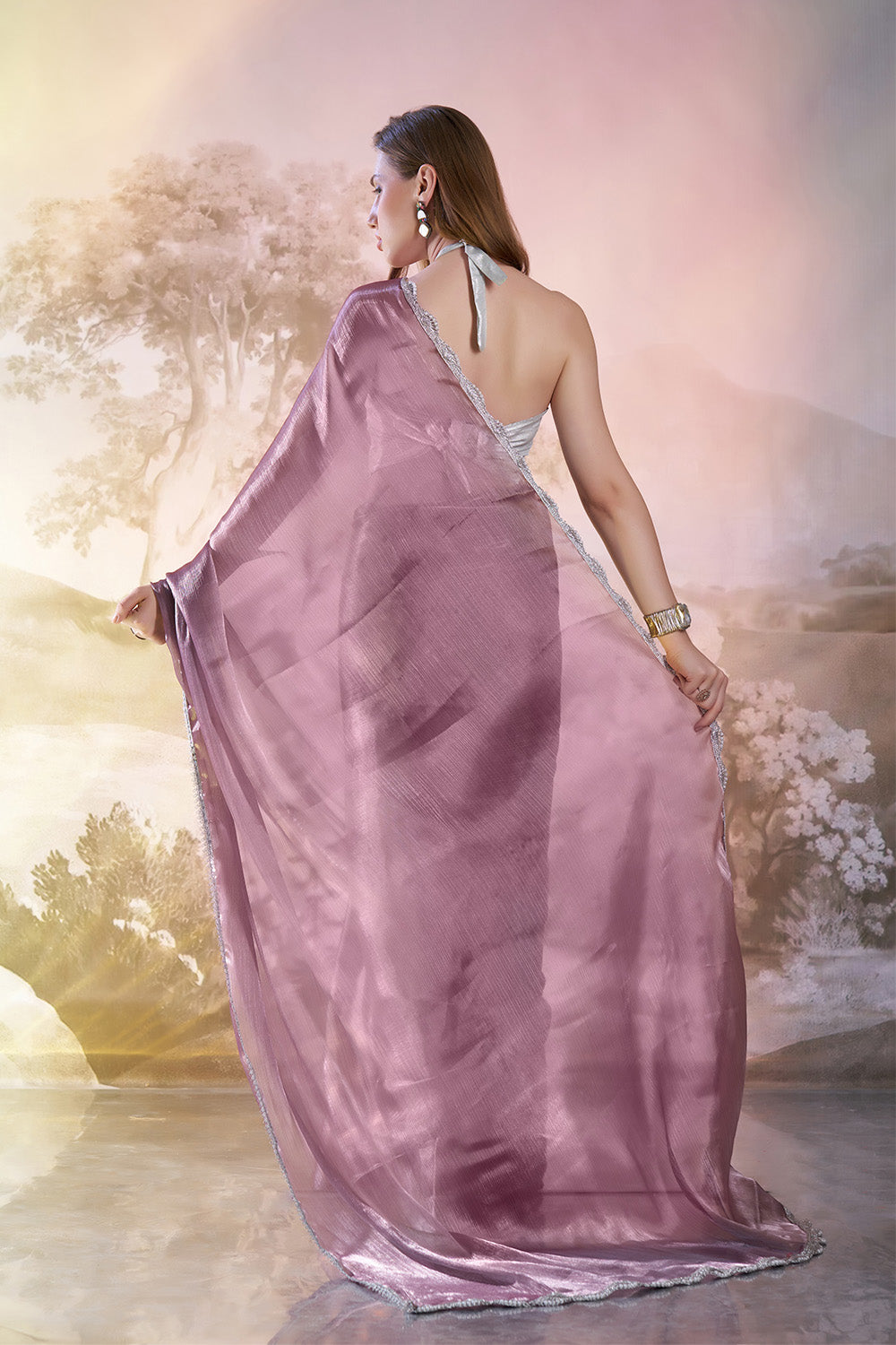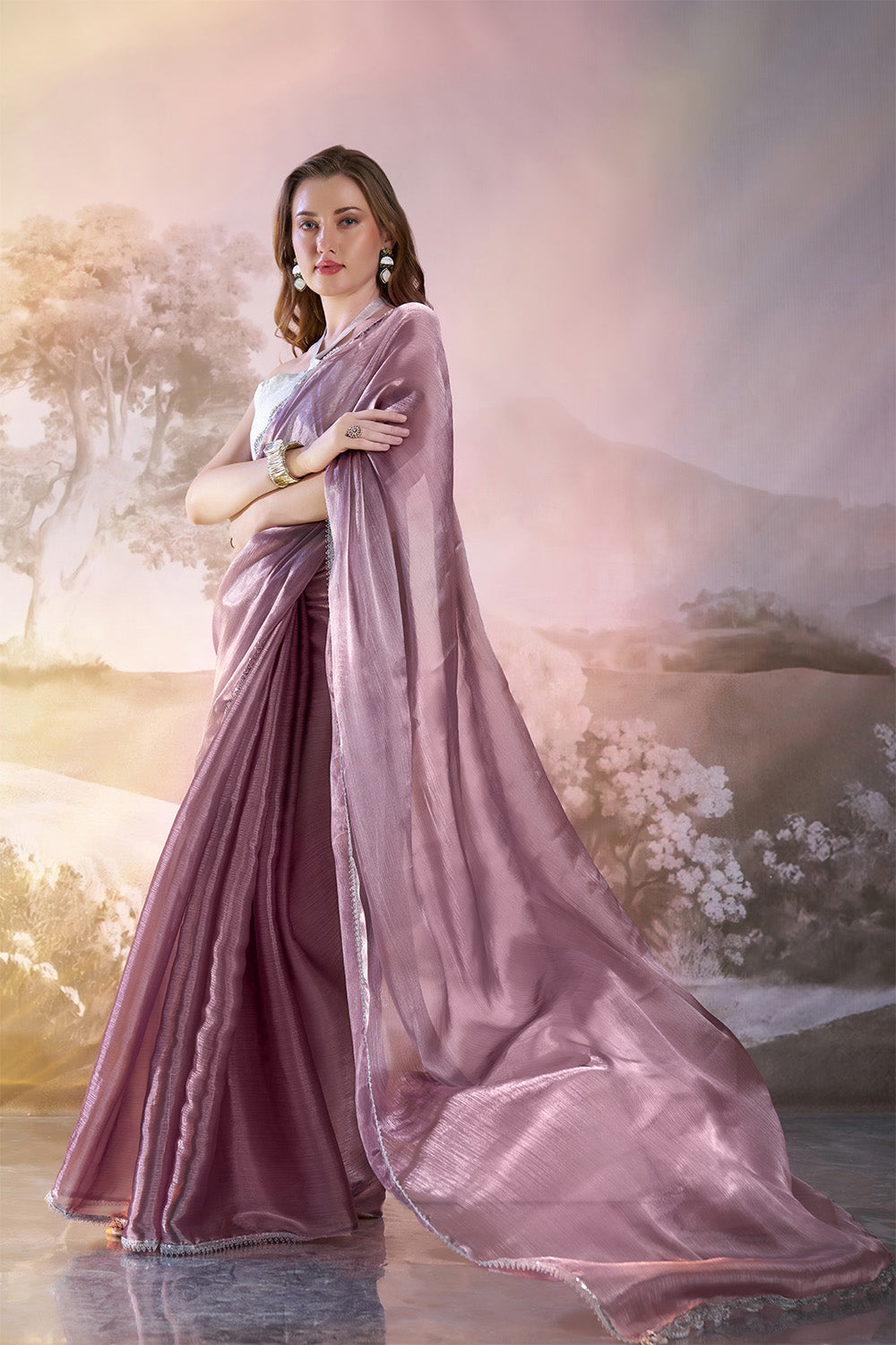 Expertly crafted and elegantly designed, the Dark Lavender Organza Saree is a must-have for any fashion-forward woman. The delicate lace detailing adds a touch of sophistication, while the unstitched blouse provides versatility and a perfect fit. Made from high-quality organza, this saree exudes luxury and style.