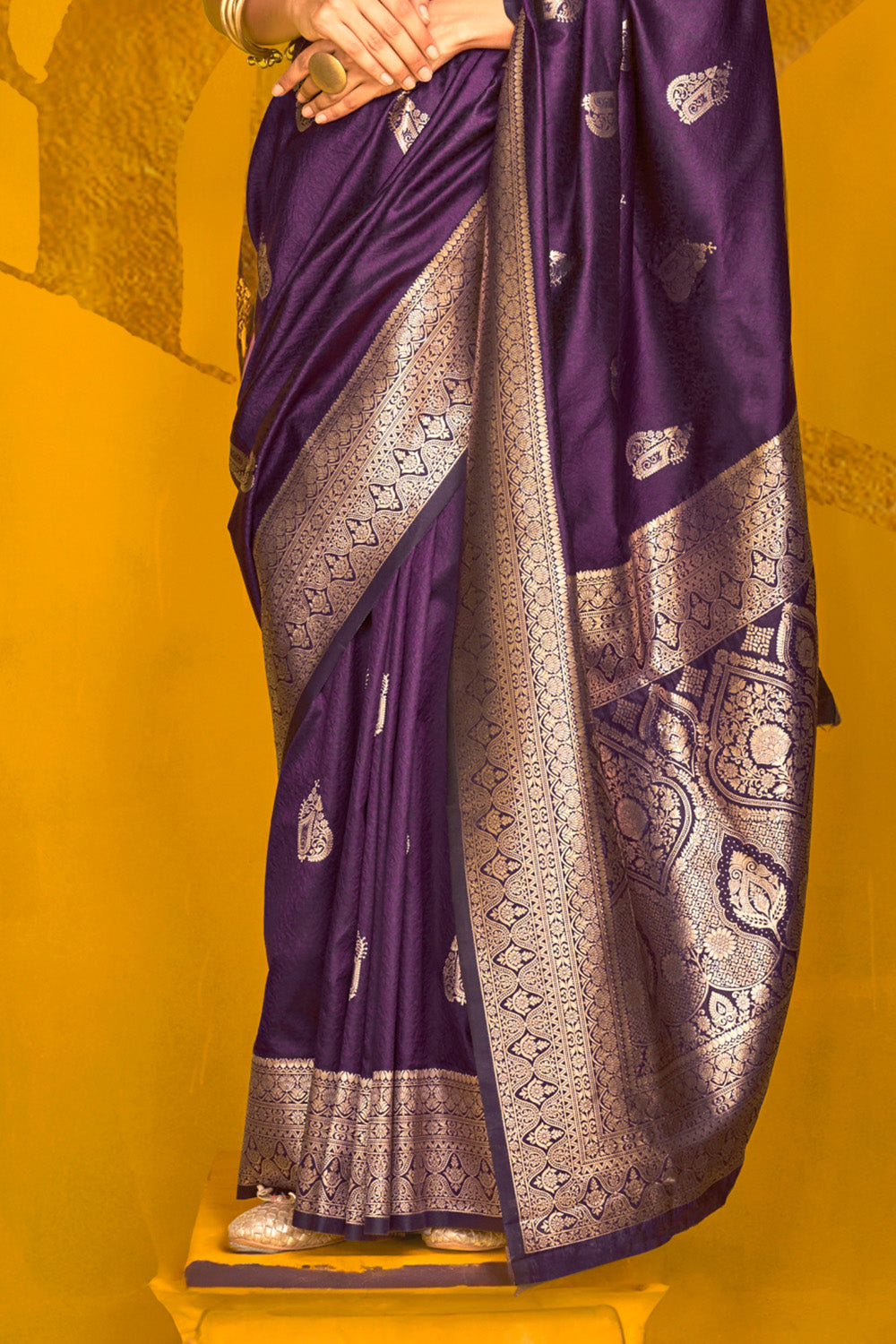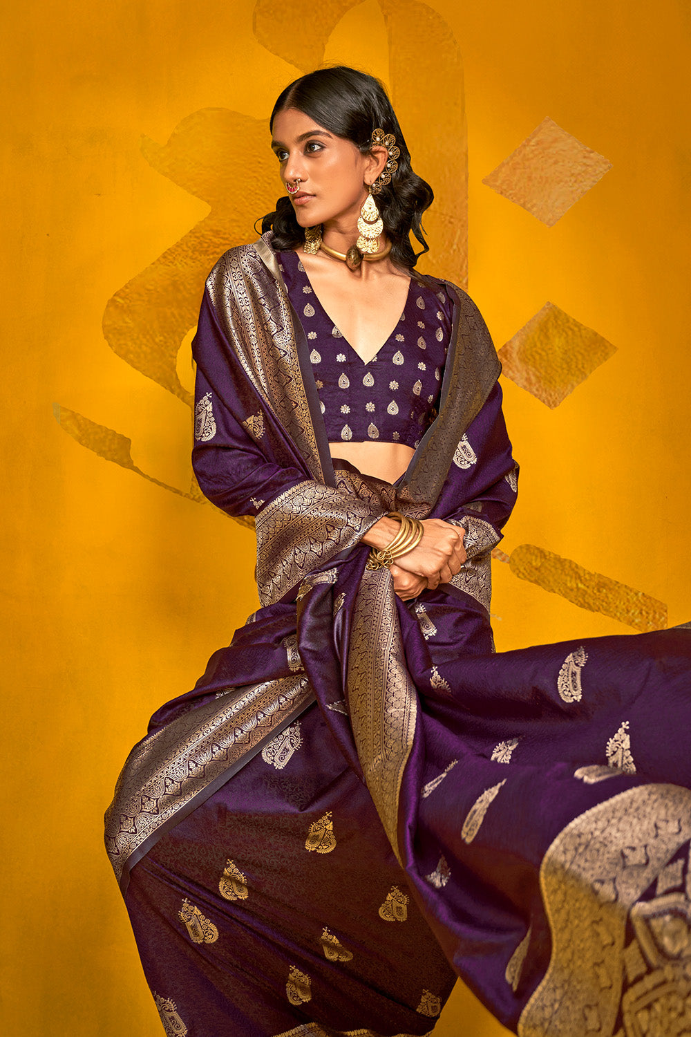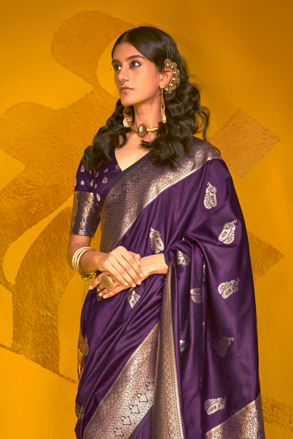 Dark Purple Banarasi Saree With Pallu And Blouse
