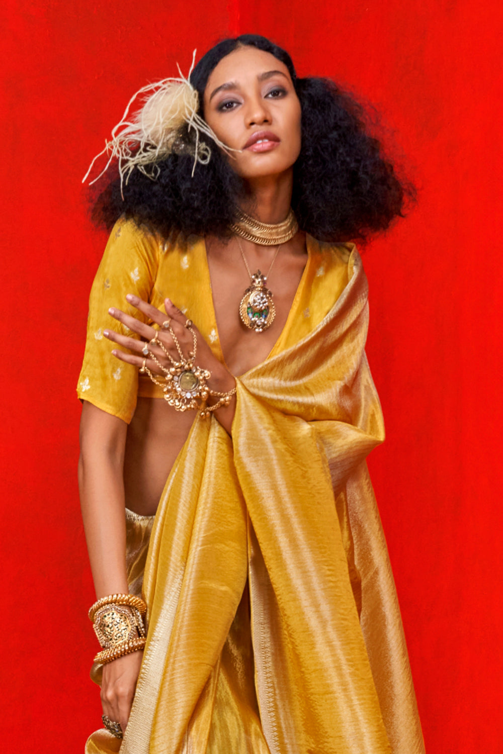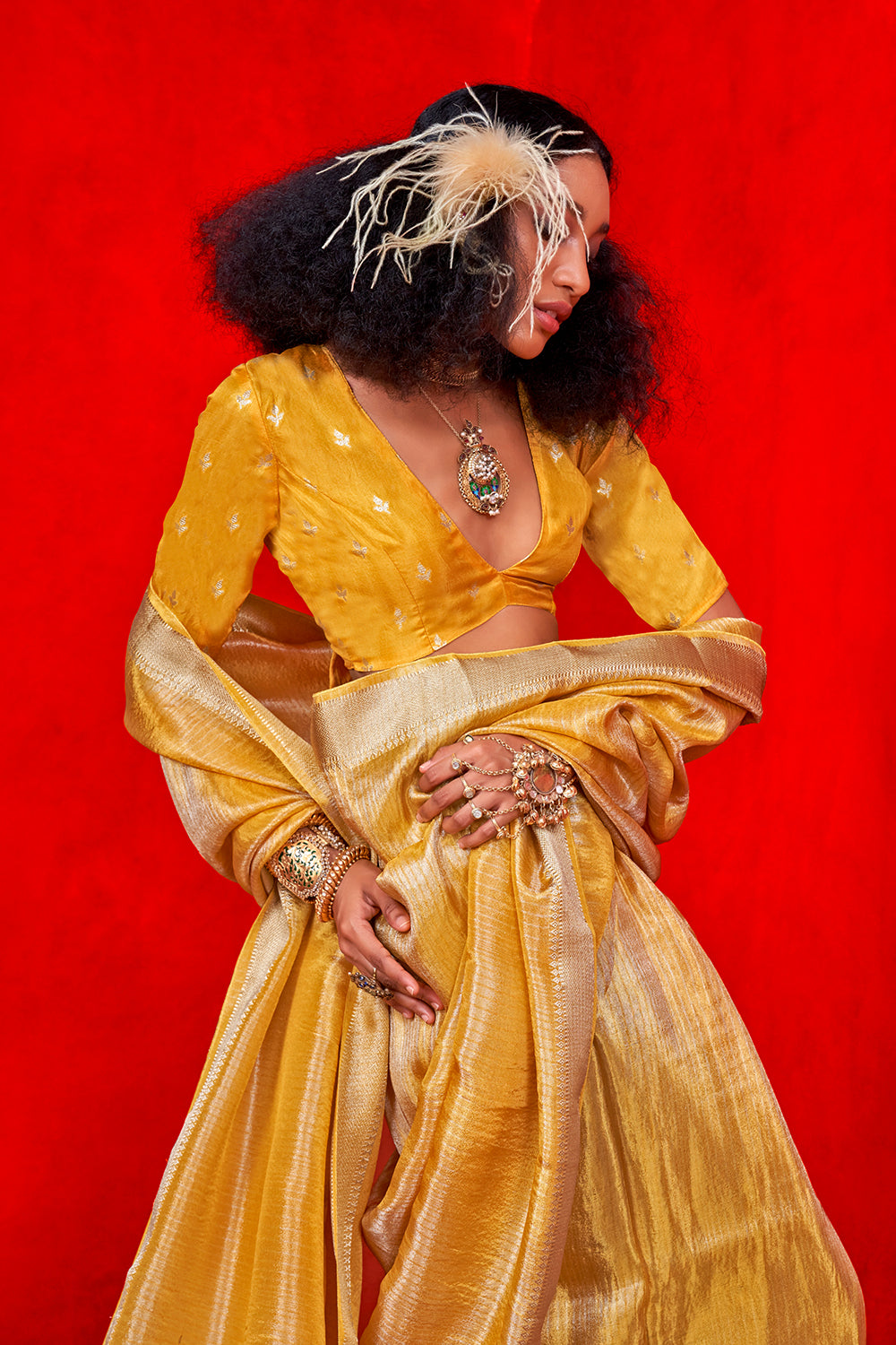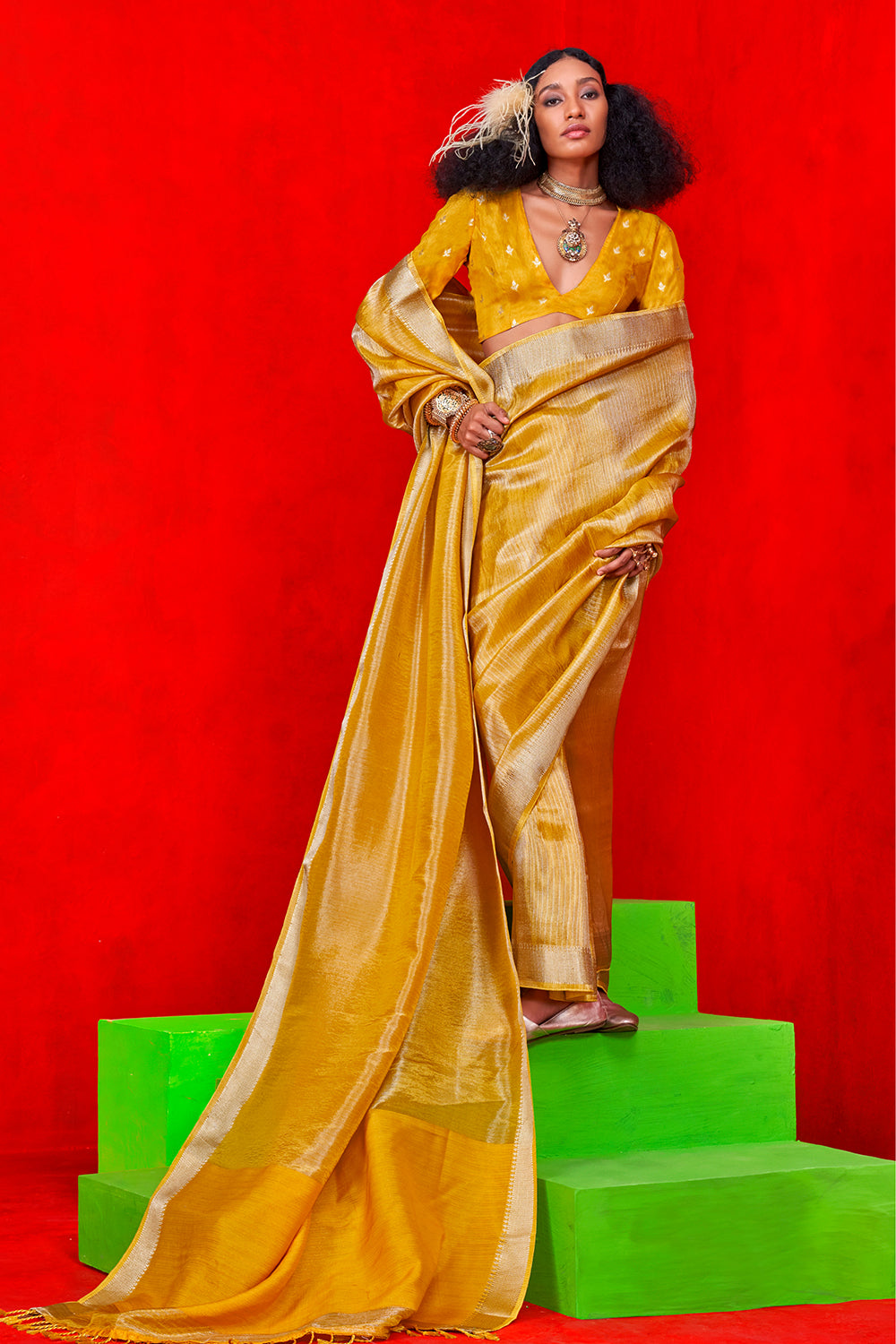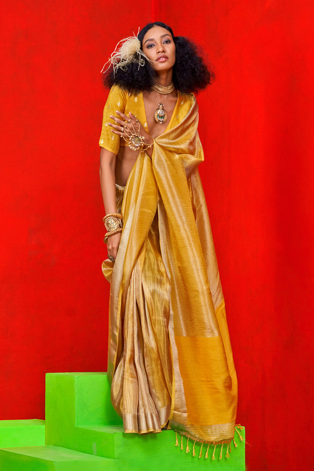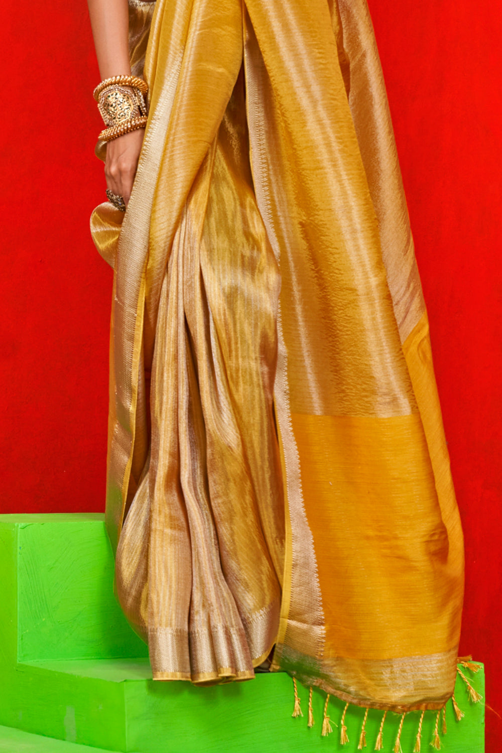 Dusty Gold Viscose Zari Tissue Saree With Blouse