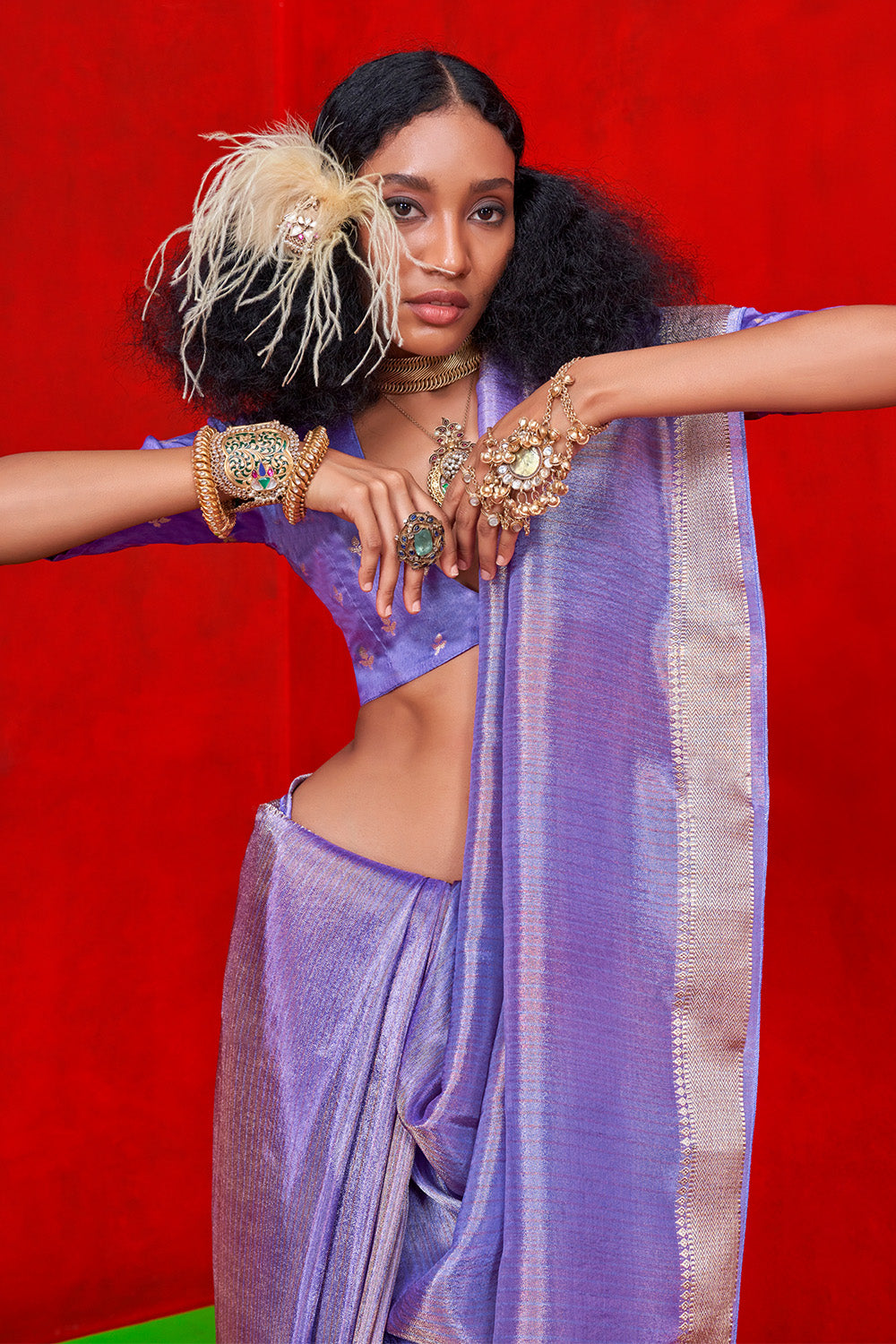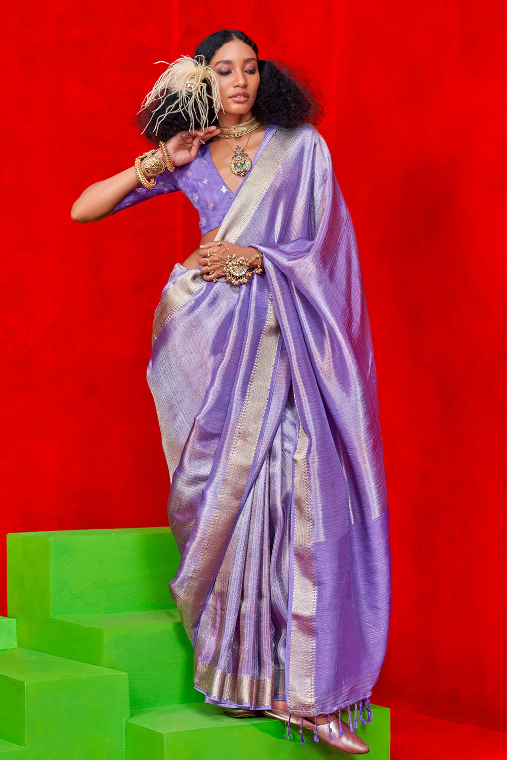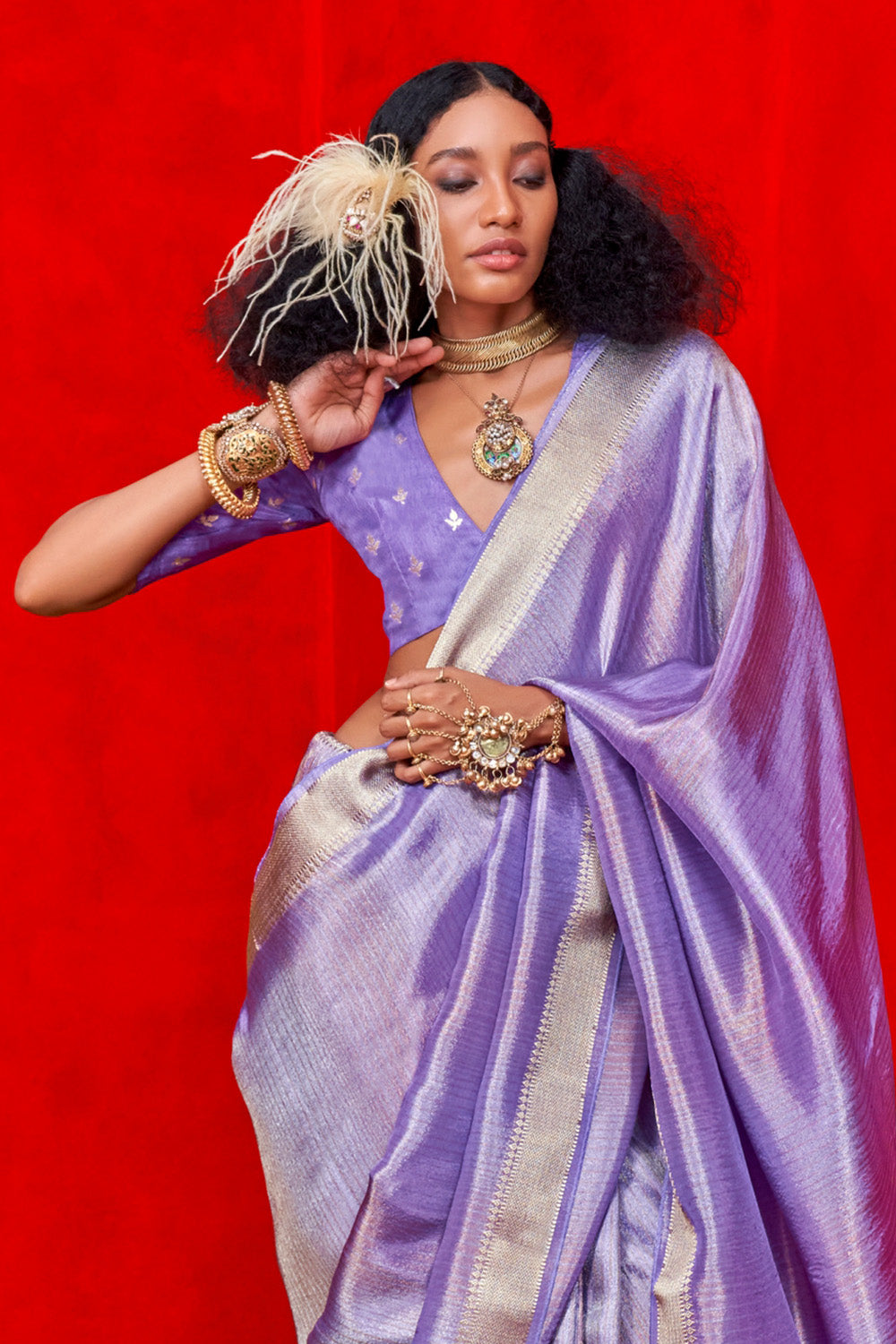 Dusty Lilac Viscose Zari Tissue Saree With Blouse