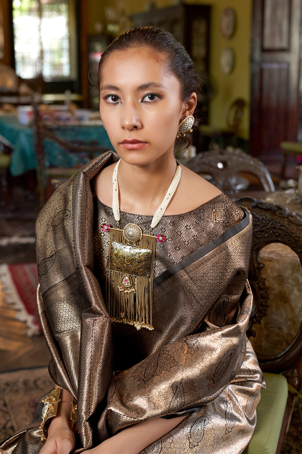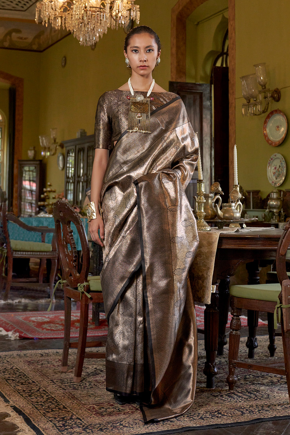Golden Brown Dharmavaram Weaving Saree With Blouse