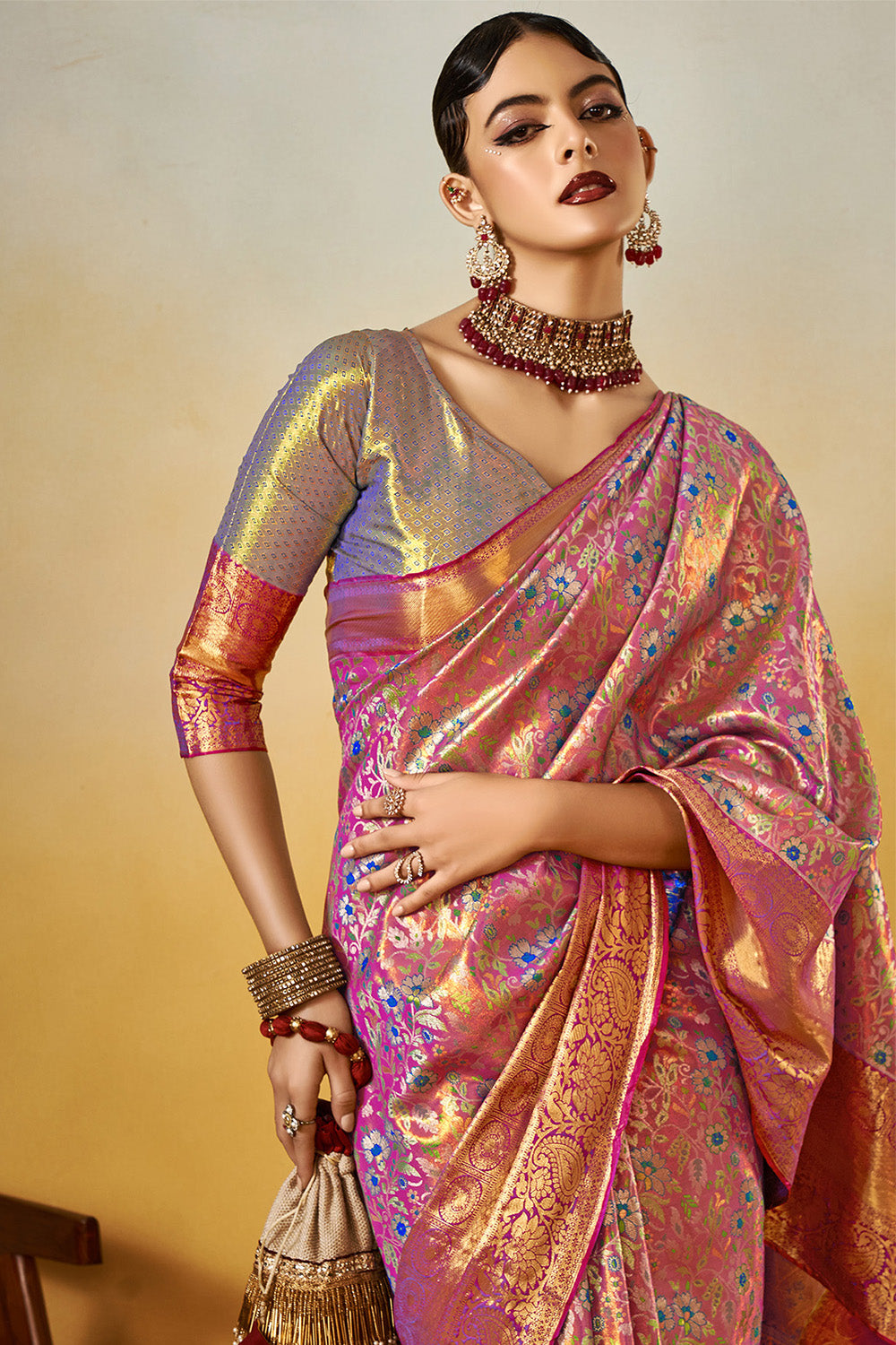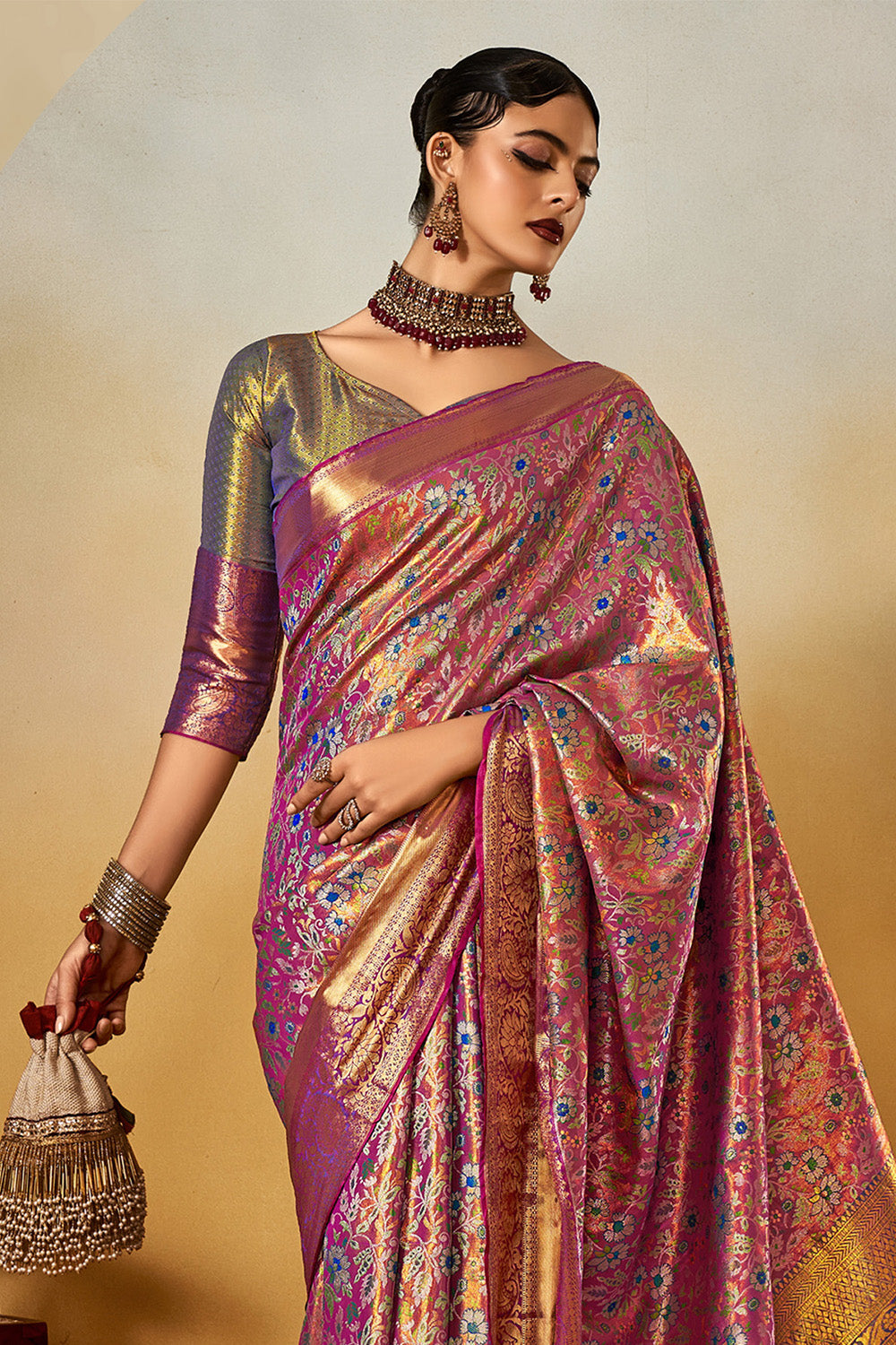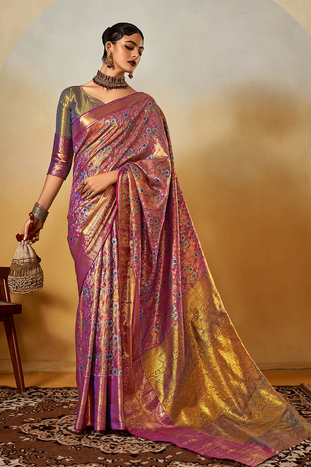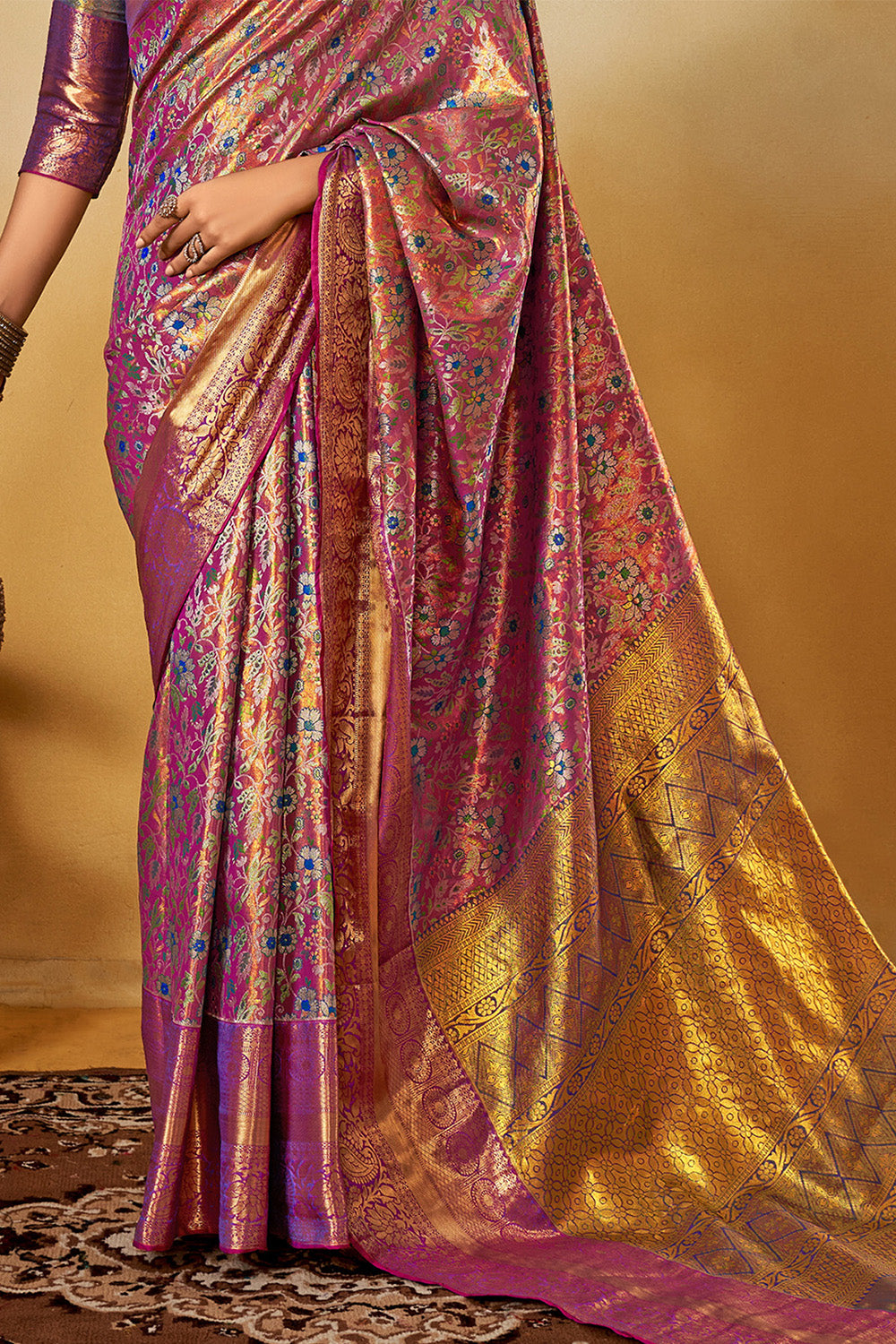 Golden Purple Dual Tone Jaquard Saree With Blouse