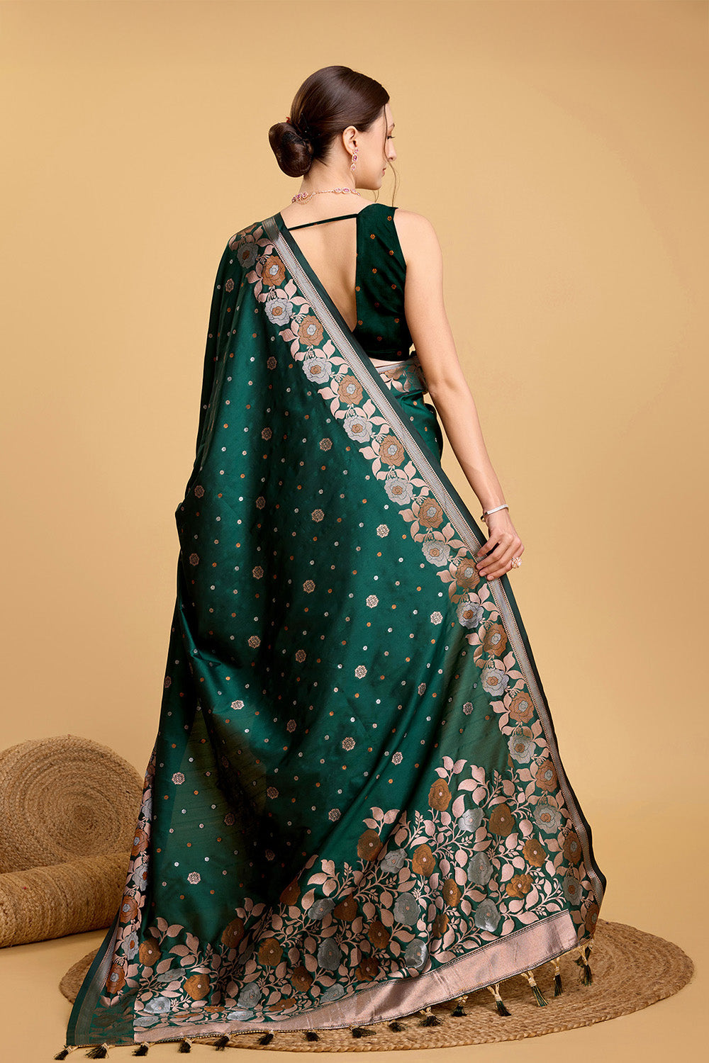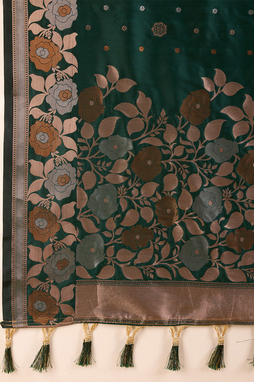 Green Floral Motif Saree With Tassel And Blouse