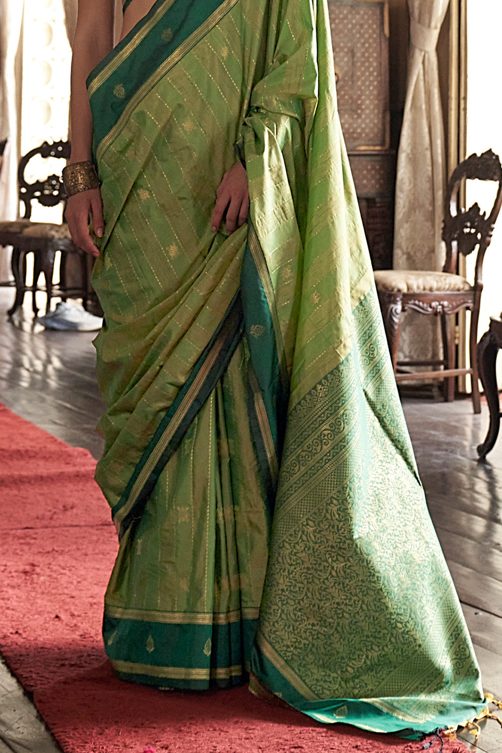 Green Leheriya Stripes Saree With Blouse