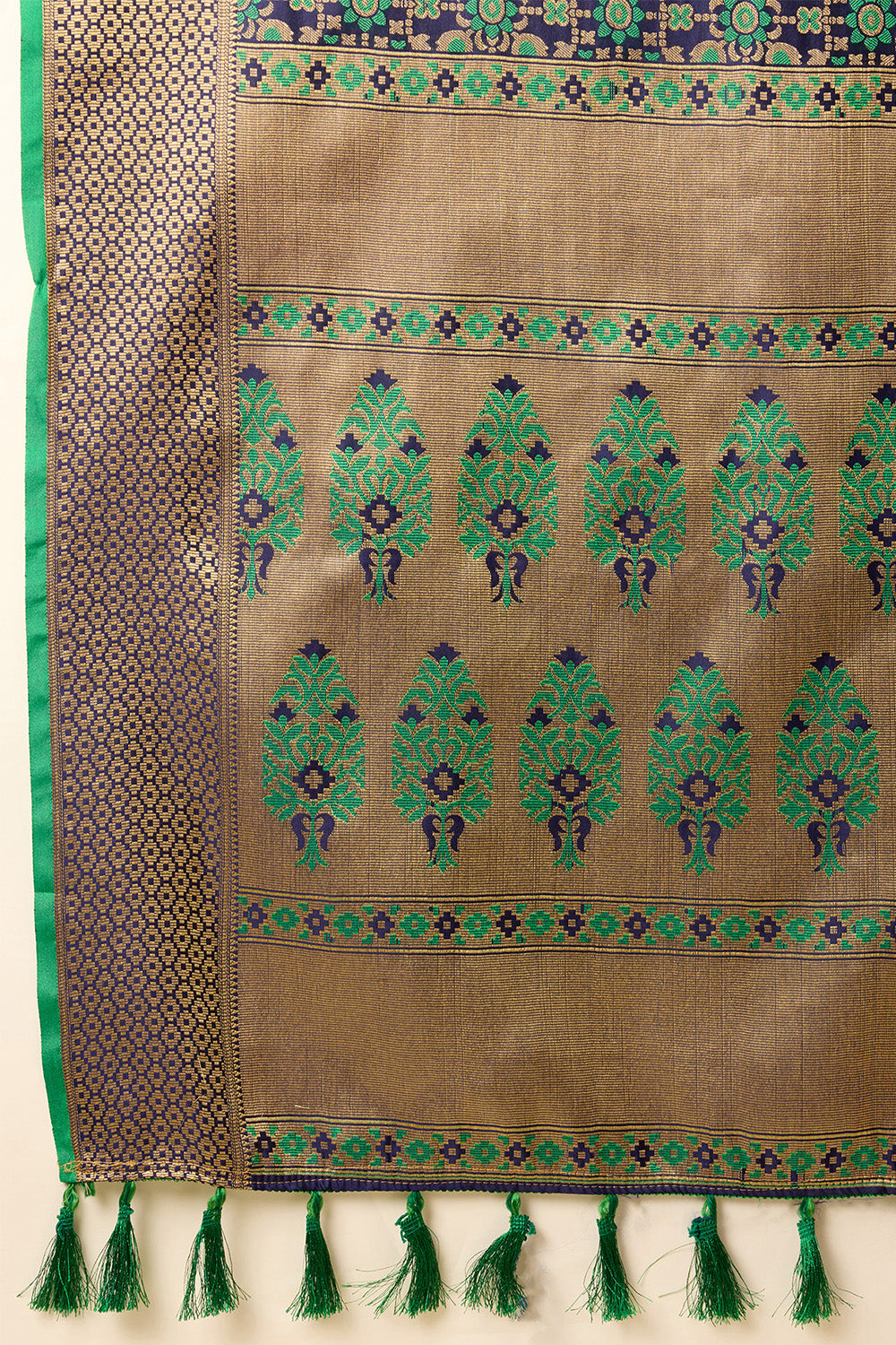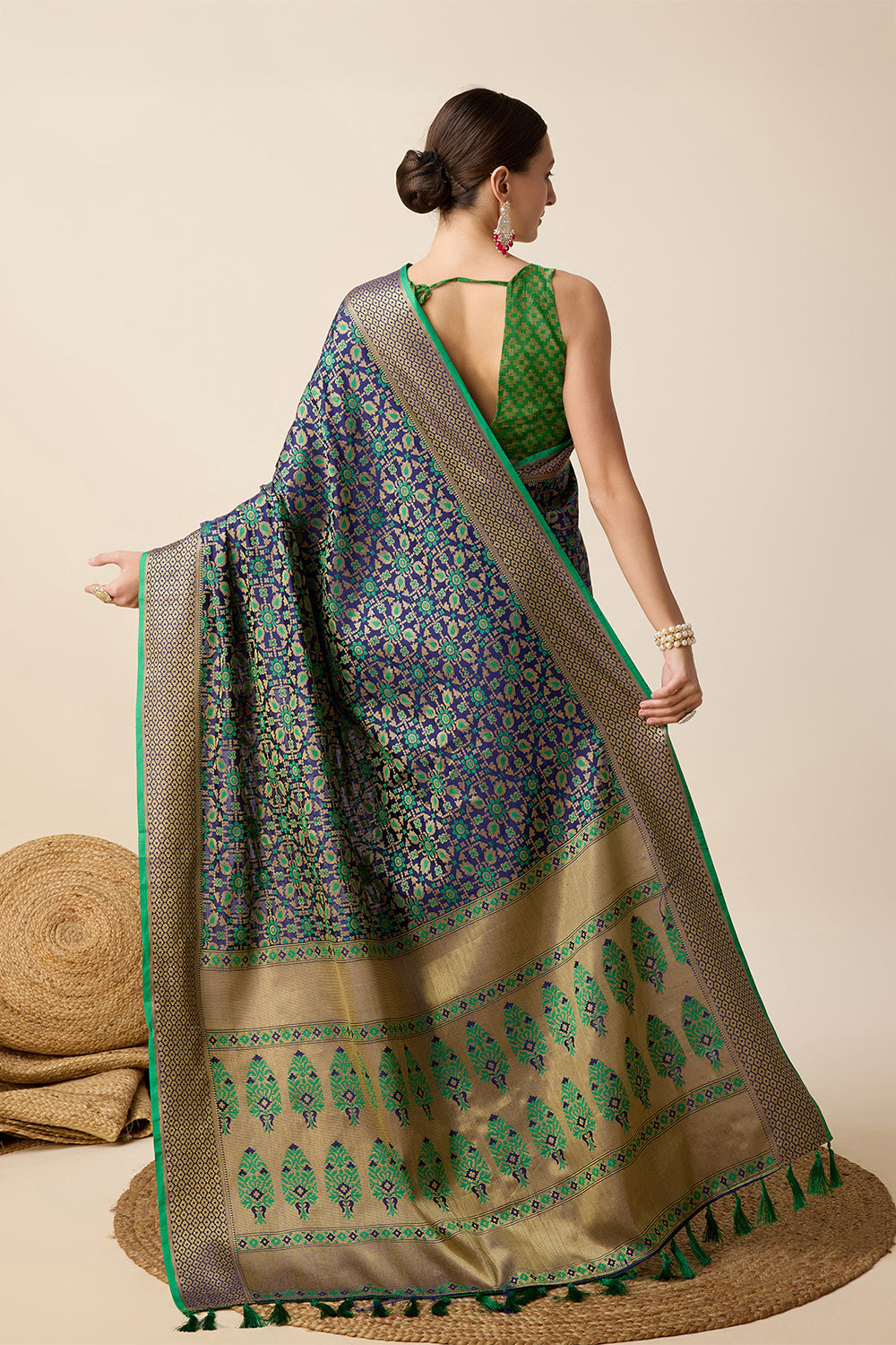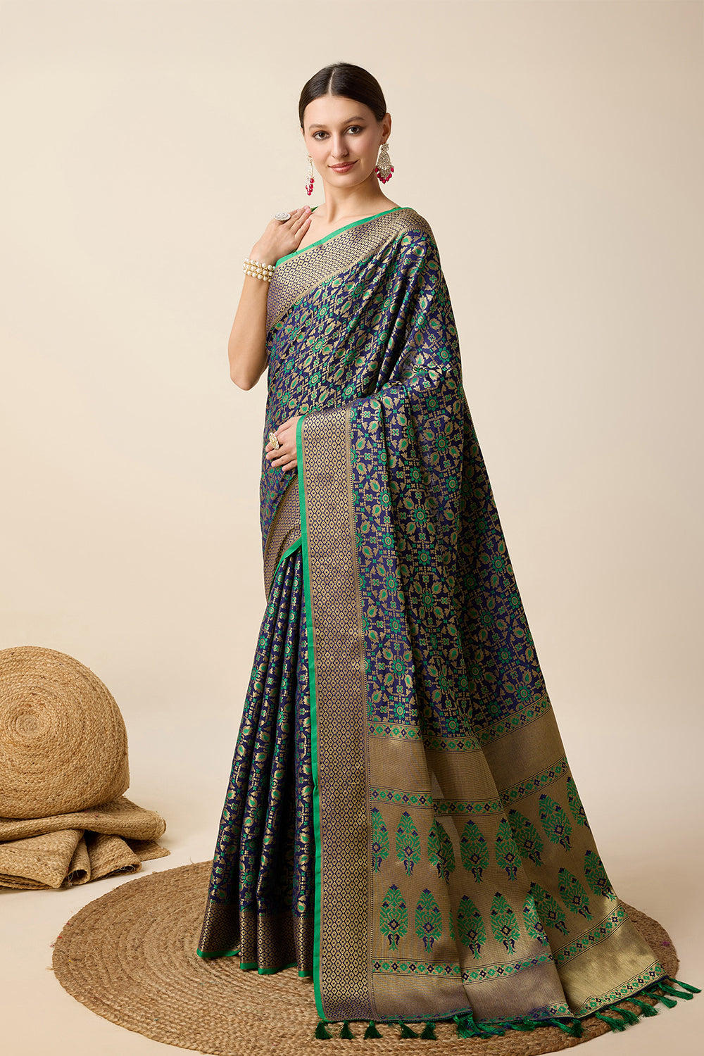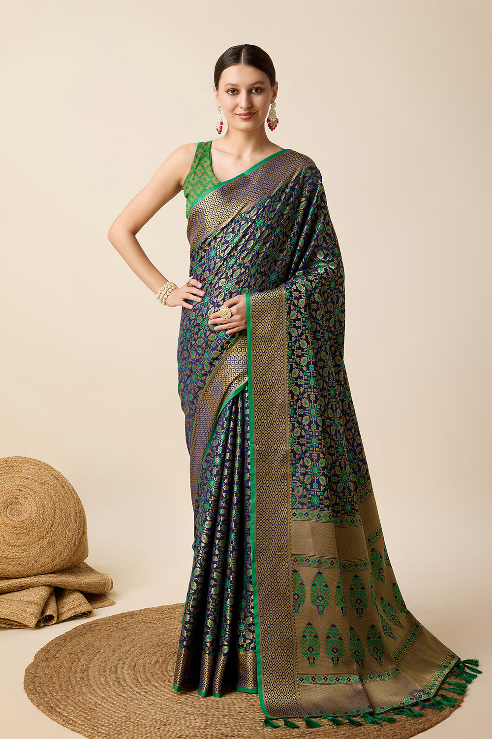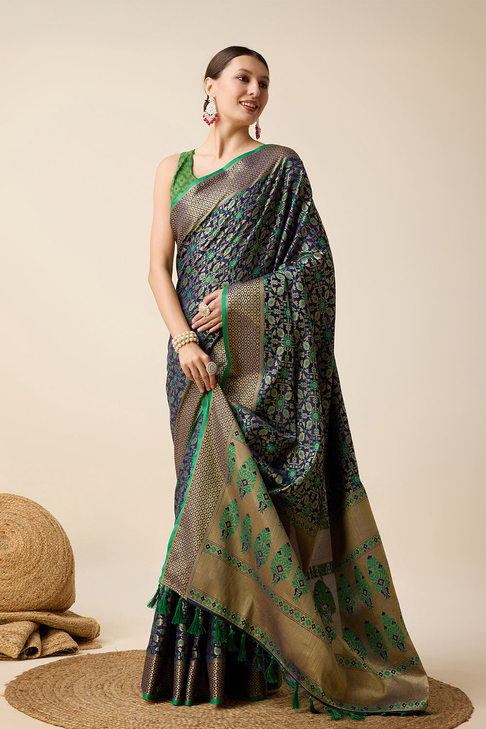 This exquisite Green Patola Saree is expertly weaved with intricate tassels, showcasing a traditional and elegant design. Crafted with quality and attention to detail, this saree is the perfect addition to any wardrobe. Made with a vibrant green color, this saree is sure to stand out and make a statement at any occasion.