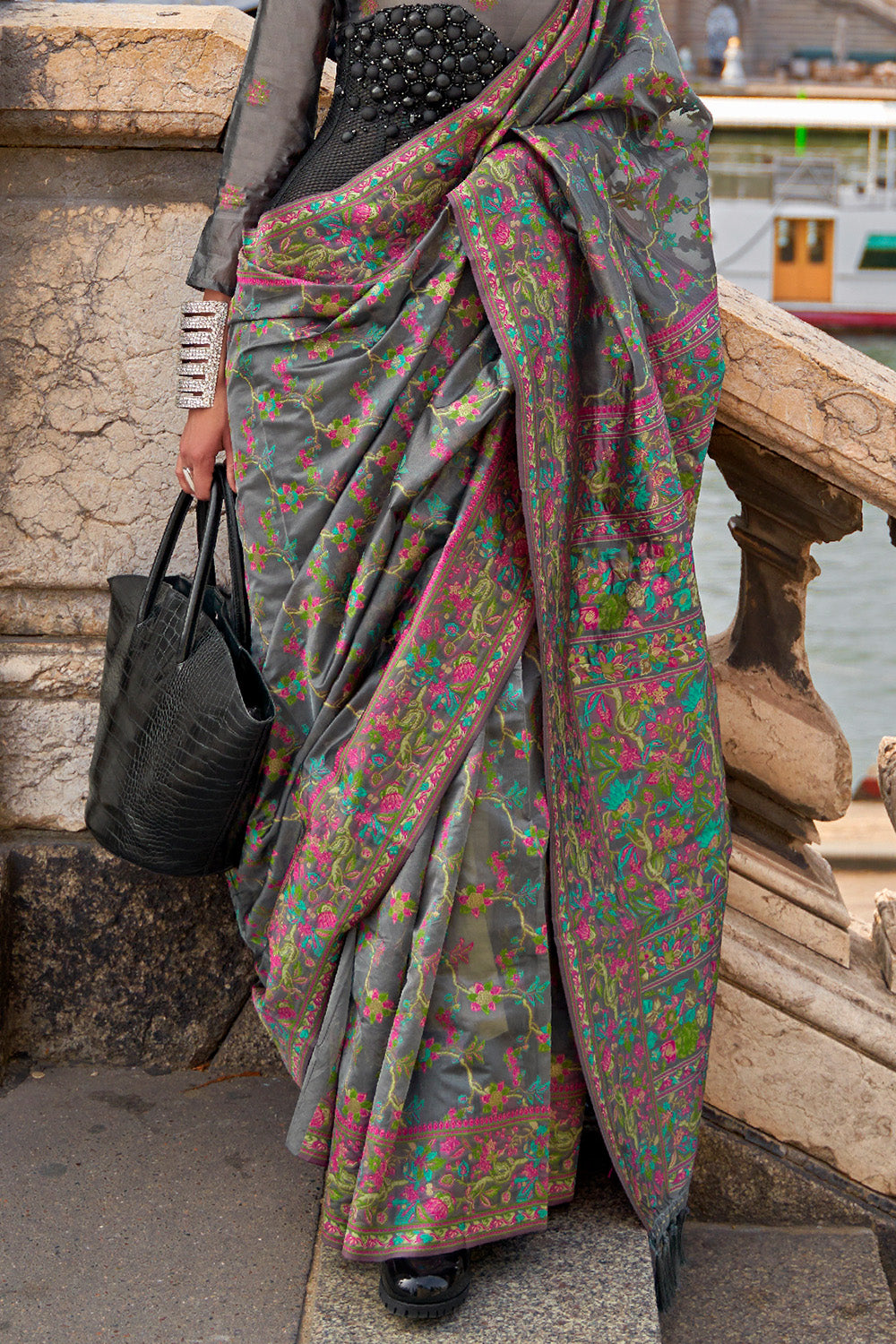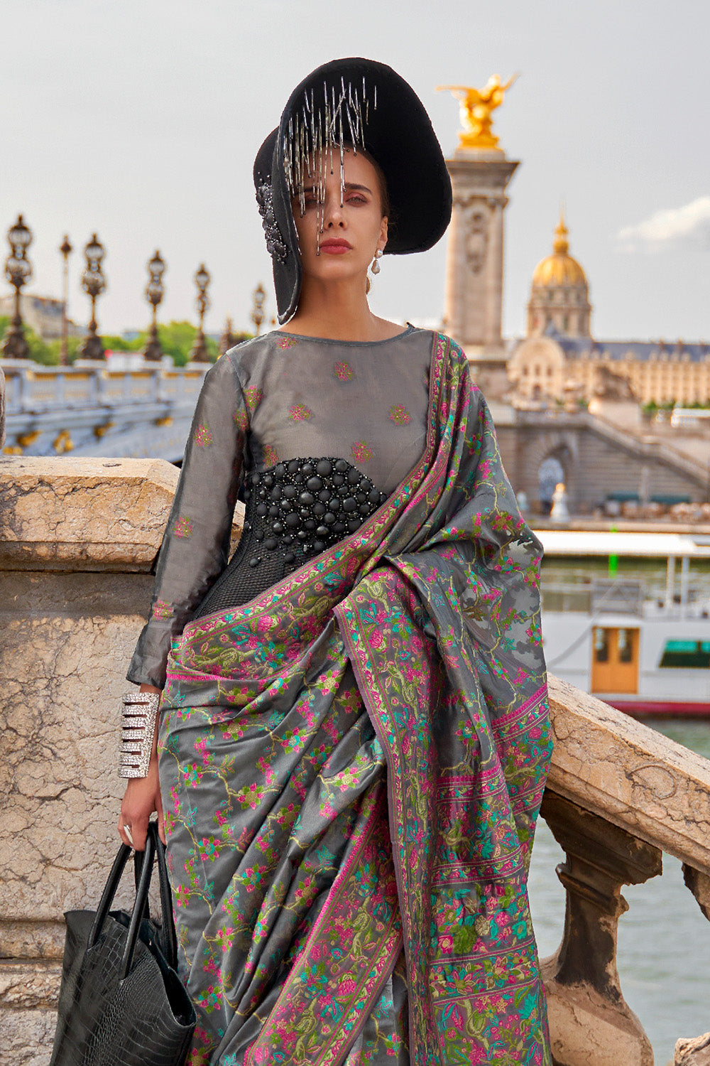 Elevate your wardrobe with our grey organza parsi sarees. Made from premium quality organza fabric, these sarees feature intricate parsi embroidery that exudes elegance and sophistication. Comes with a matching grey blouse to complete the look. Upgrade your style game with these timeless sarees.