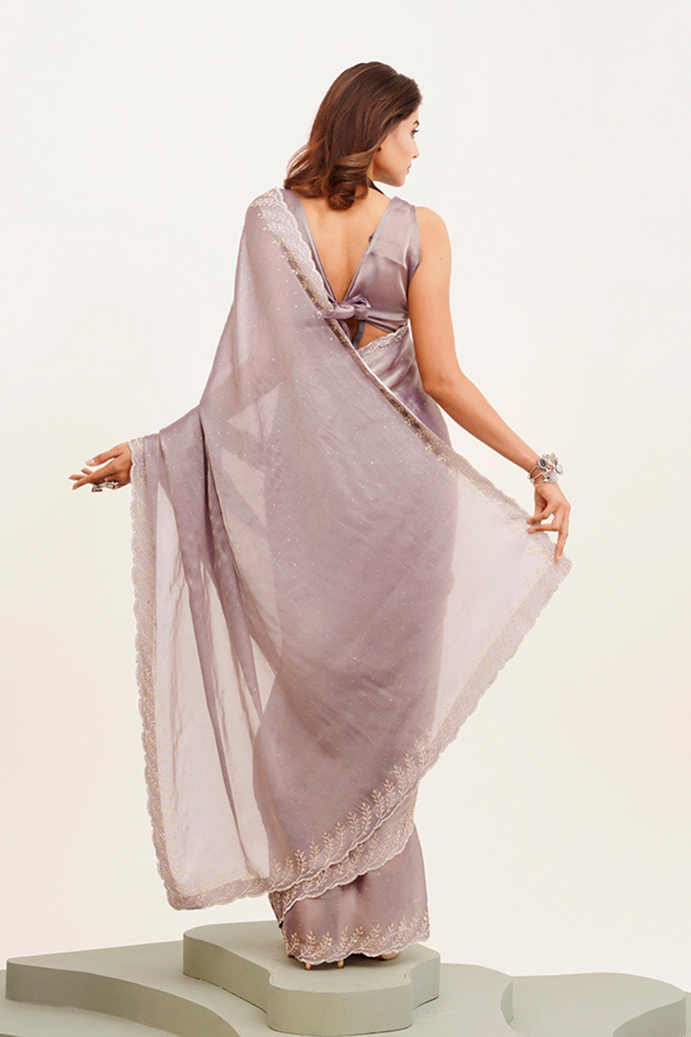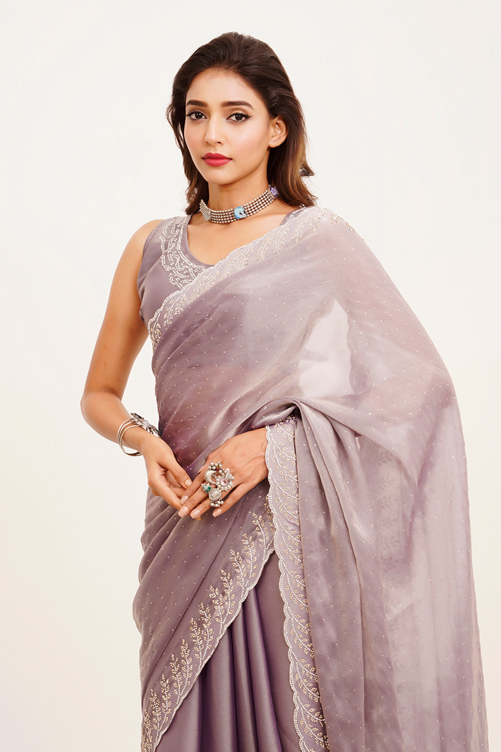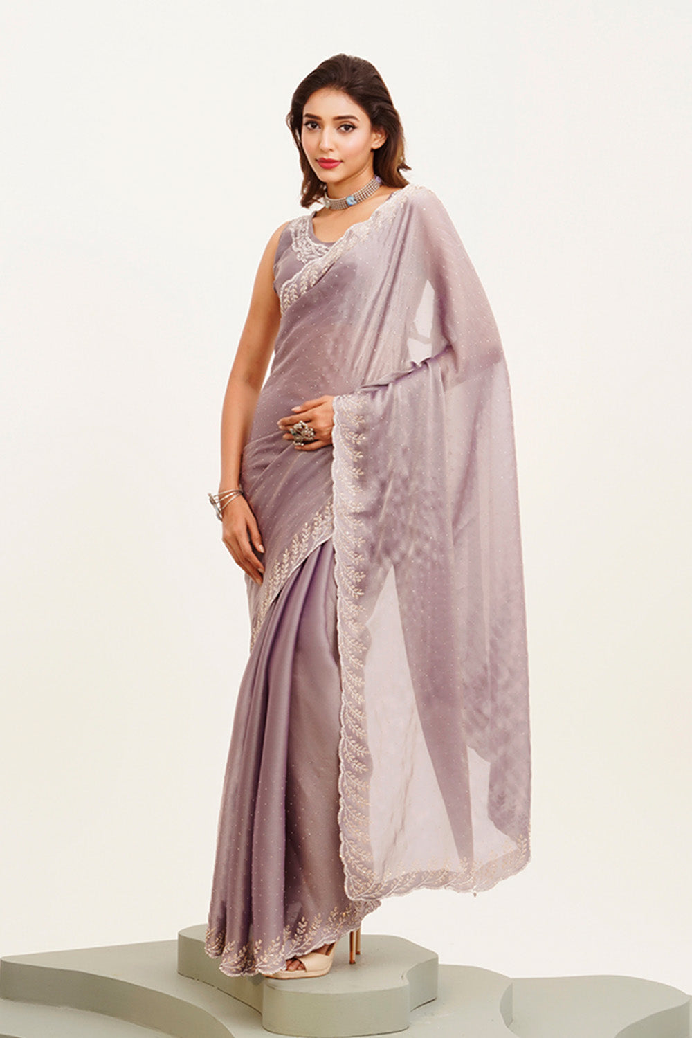 Elevate your ensemble with this Lavender Beads and Stones Satin Saree, designed for a refined and elegant look. Crafted from smooth satin, the saree features delicate bead and stone embellishments that add subtle shimmer without overwhelming the fabric’s natural sheen. Paired with a matching blouse, this set provides a cohesive and sophisticated style suitable for formal occasions or festive events. The lightweight satin ensures a comfortable drape, while the intricate detailing highlights expert craftsmanship. Perfect for those who appreciate understated luxury with a touch of sparkle.