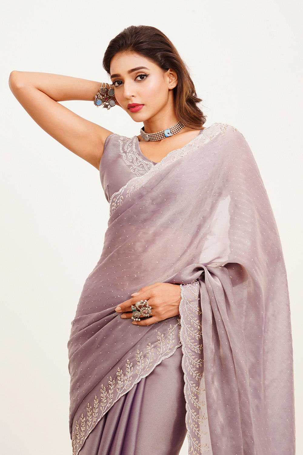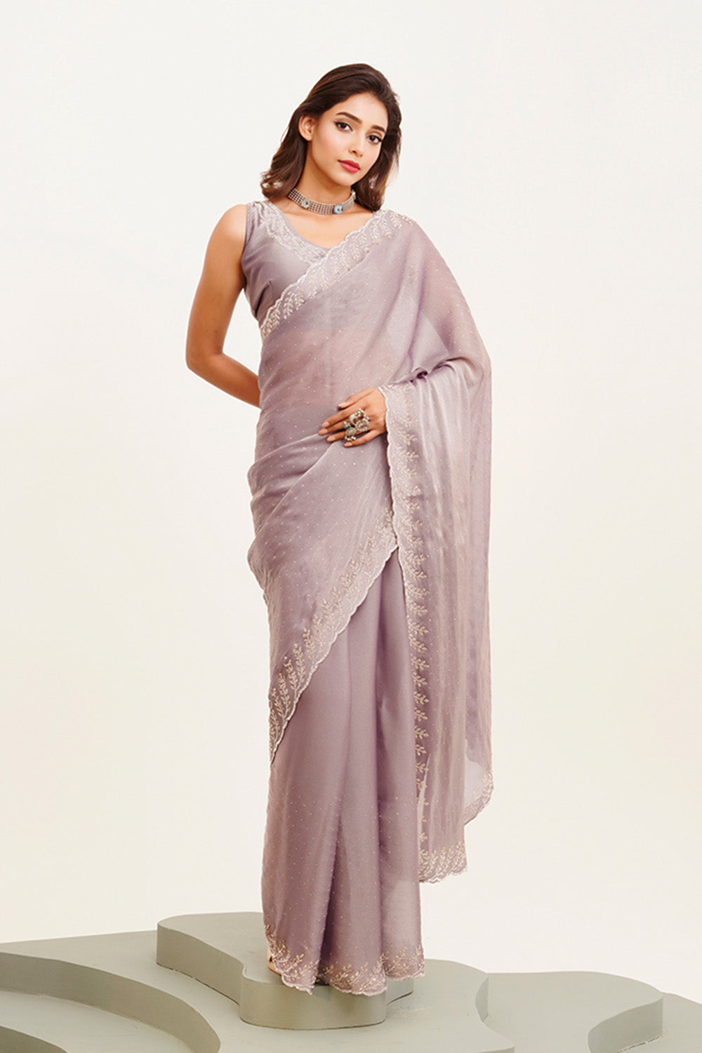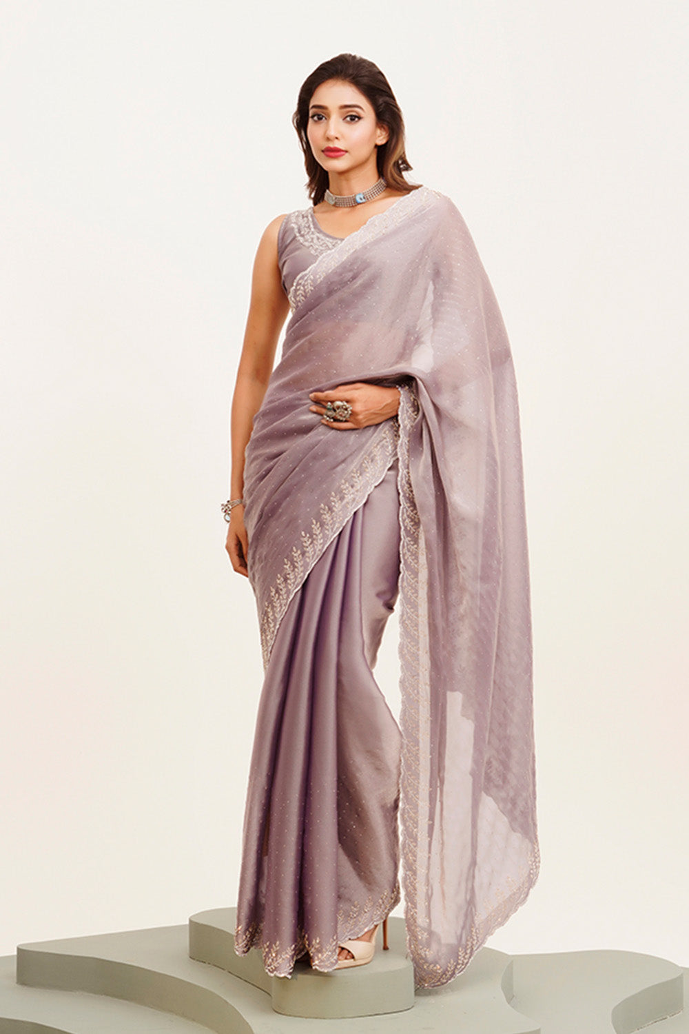 Elevate your ensemble with this Lavender Beads and Stones Satin Saree, designed for a refined and elegant look. Crafted from smooth satin, the saree features delicate bead and stone embellishments that add subtle shimmer without overwhelming the fabric’s natural sheen. Paired with a matching blouse, this set provides a cohesive and sophisticated style suitable for formal occasions or festive events. The lightweight satin ensures a comfortable drape, while the intricate detailing highlights expert craftsmanship. Perfect for those who appreciate understated luxury with a touch of sparkle.